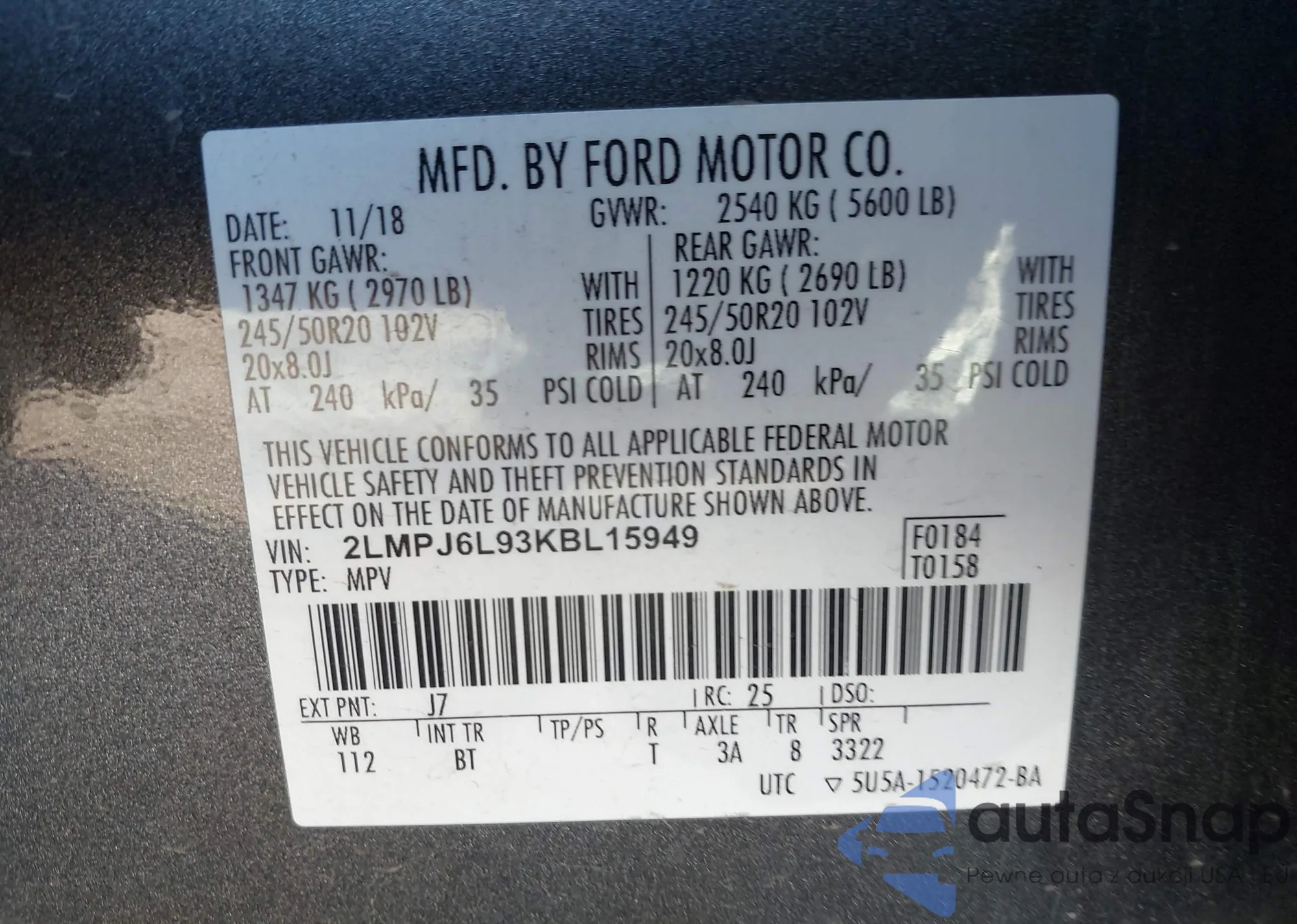 • VIN: 2LMPJ6L93KBL15949