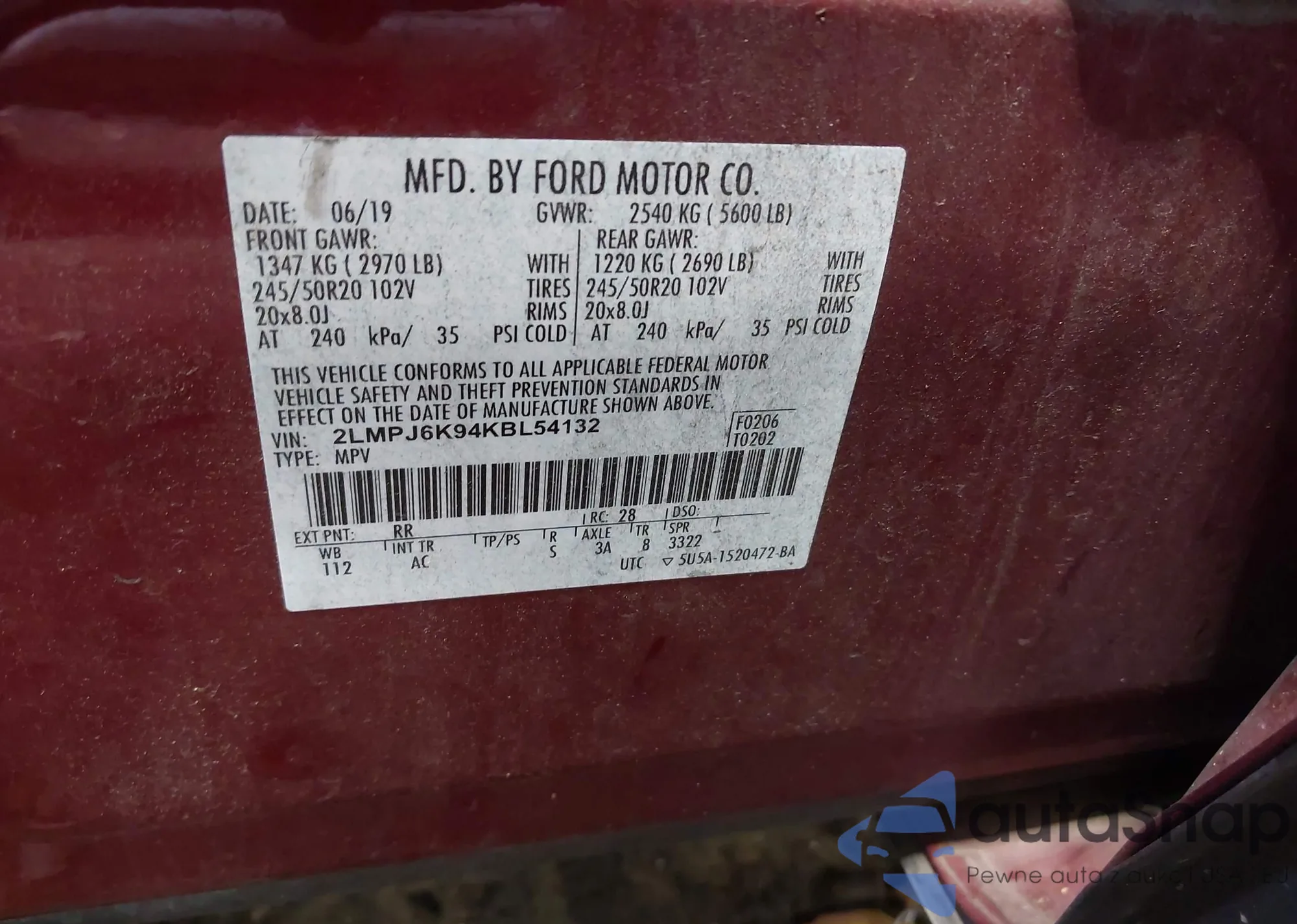 • VIN: 2LMPJ6K94KBL54132