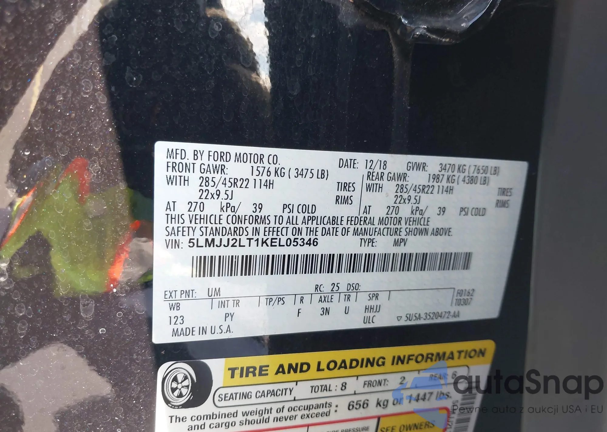 Samochód Lincoln Navigator 2019 (VIN 5LMJJ2LT1KEL05346) nie był wcześniej licytowany. Dokumenty są czyste, przebieg odpowiada lub jest niższy niż średnia rynku. Sprzedaje go firma ubezpieczeniowa – polecamy zakup. Dostawa do portu zajmie ok. 6–8 tygodni.