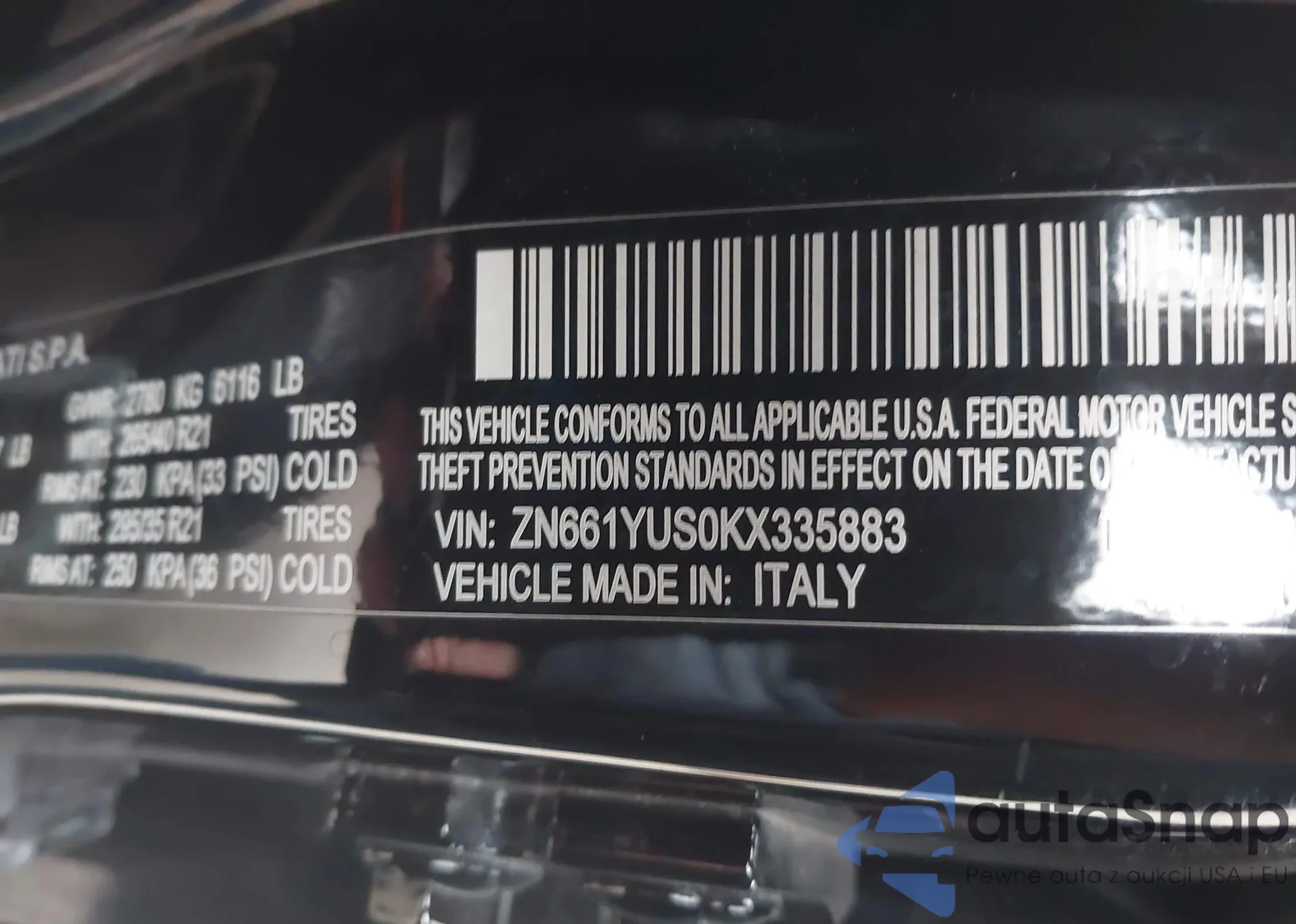 VIN: ZN661YUS0KX335883