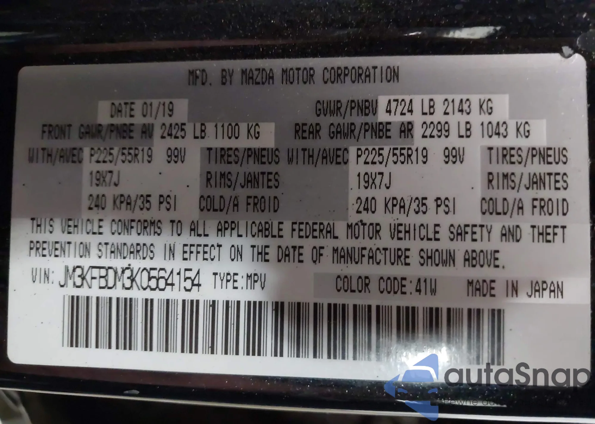 VIN: JM3KFBDM3K0564154