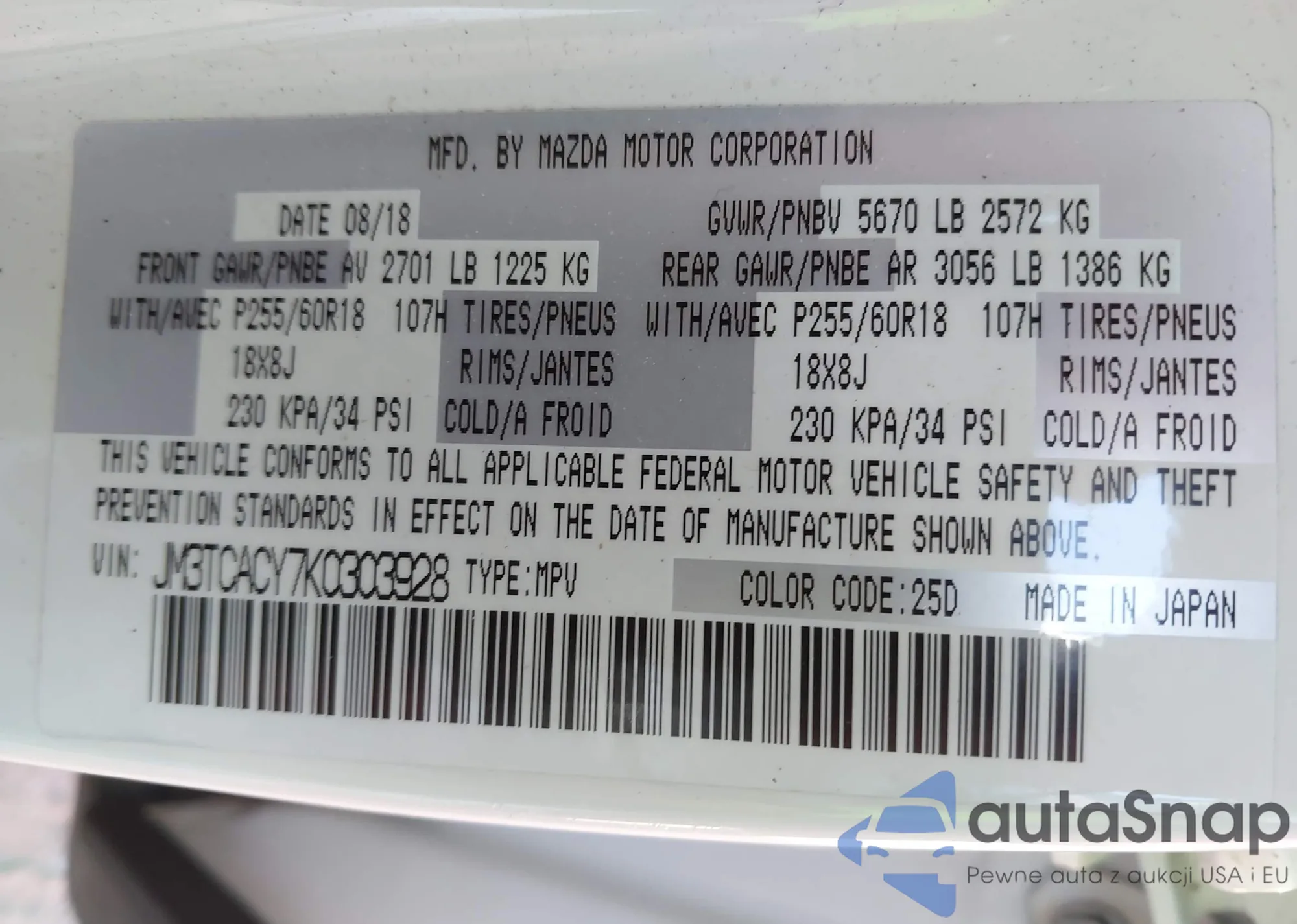 VIN: JM3TCACY7K0303928