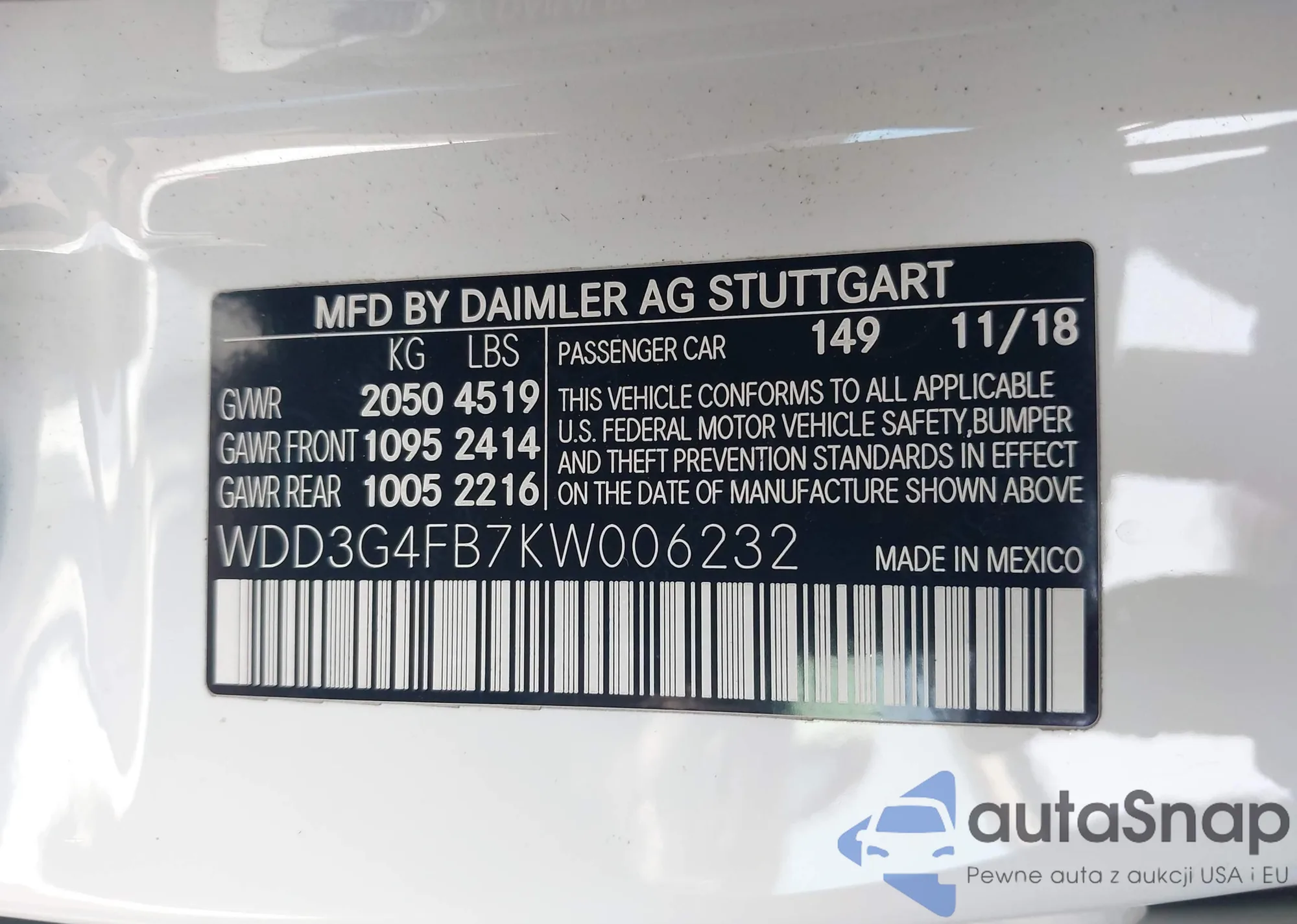 • VIN: WDD3G4FB7KW006232