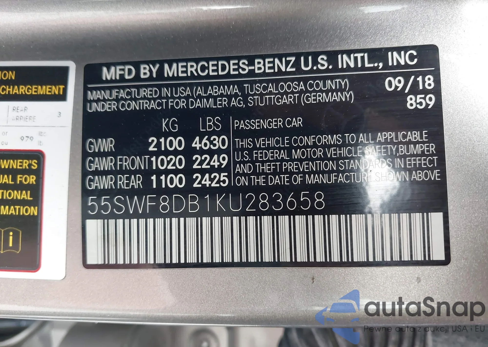 VIN: 55SWF8DB1KU283658