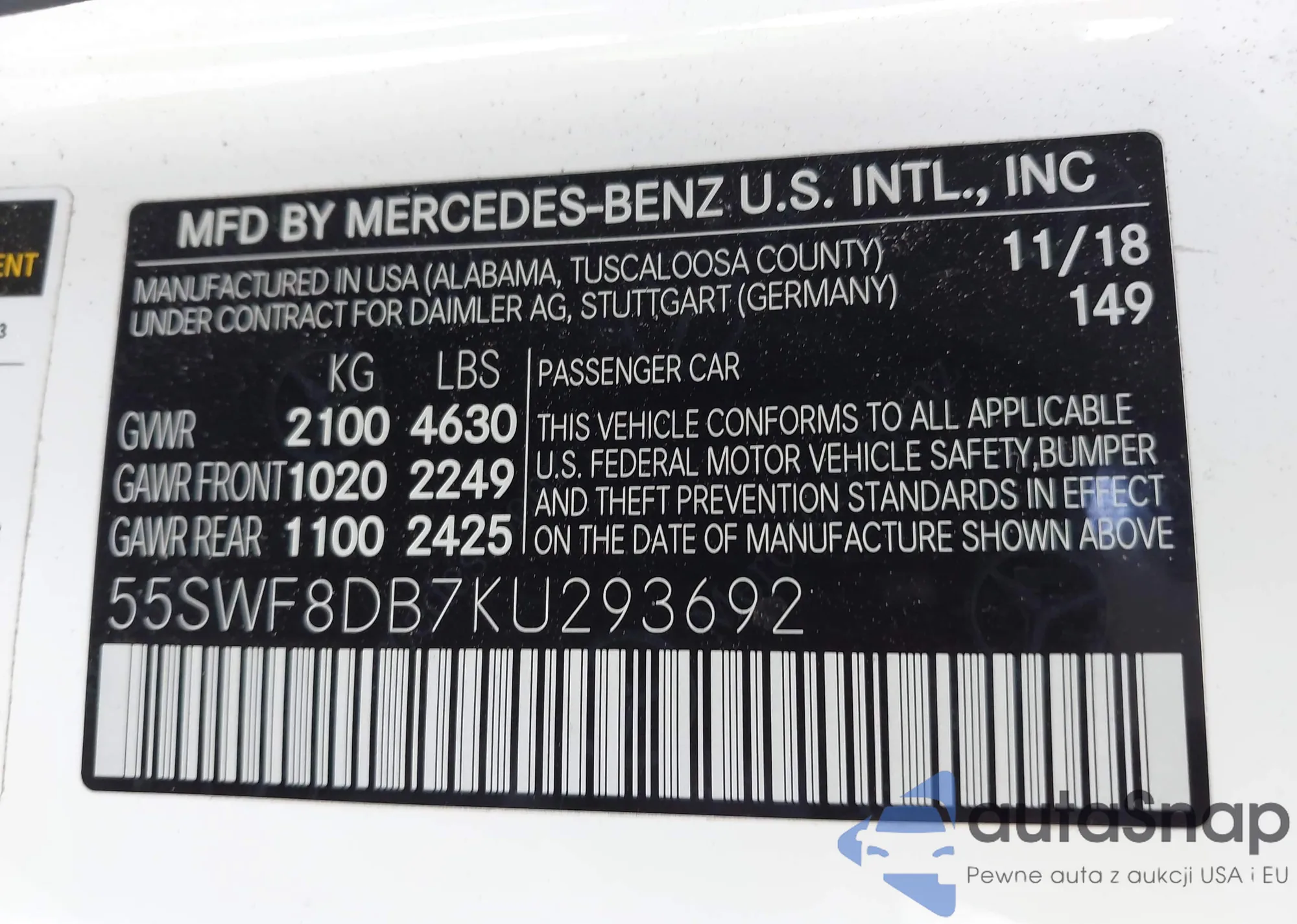 VIN: 55SWF8DB7KU293692