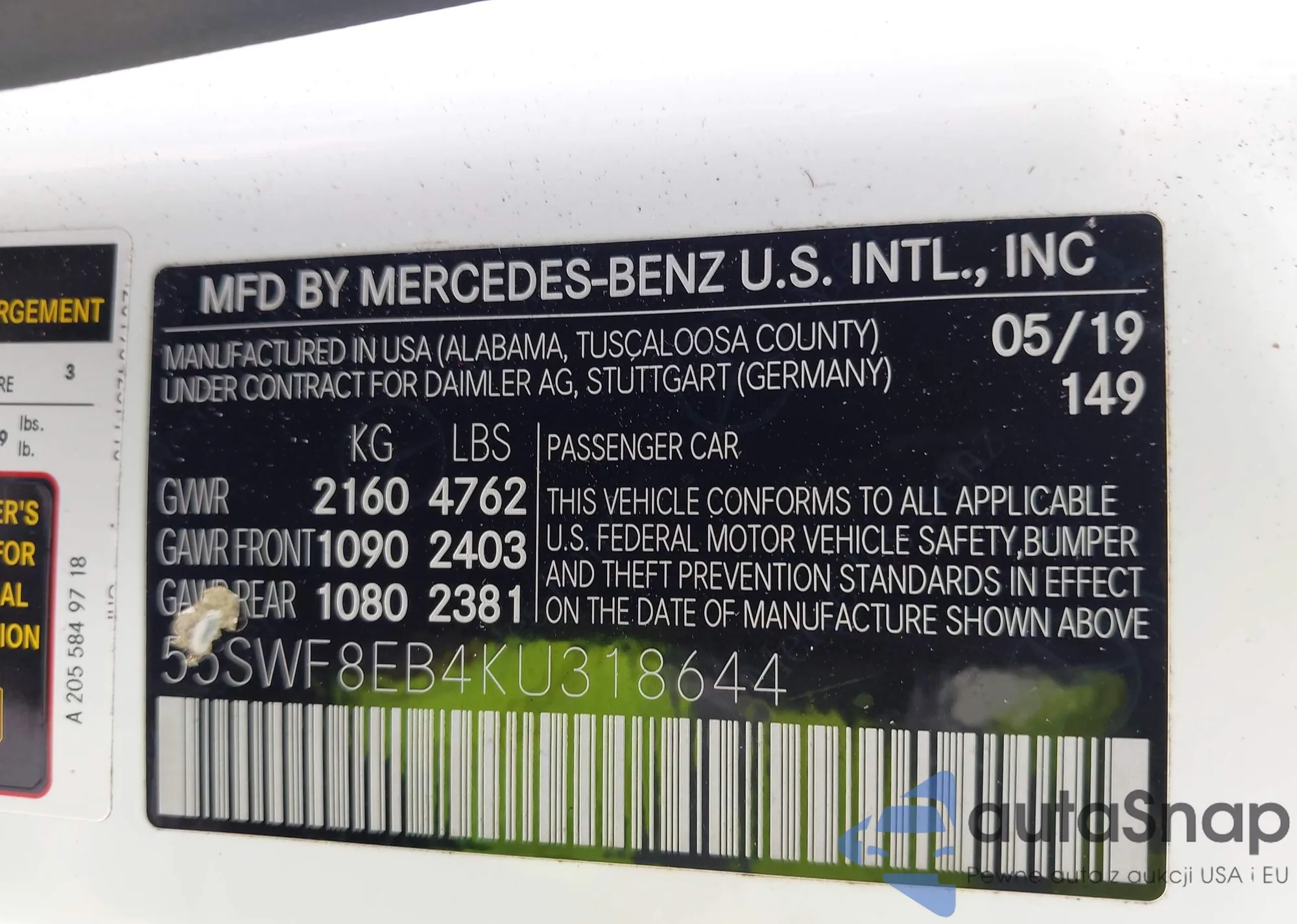 VIN: 55SWF8EB4KU318644