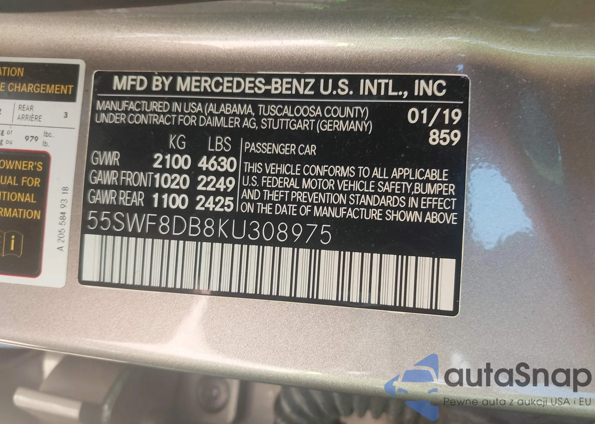 VIN: 55SWF8DB8KU308975