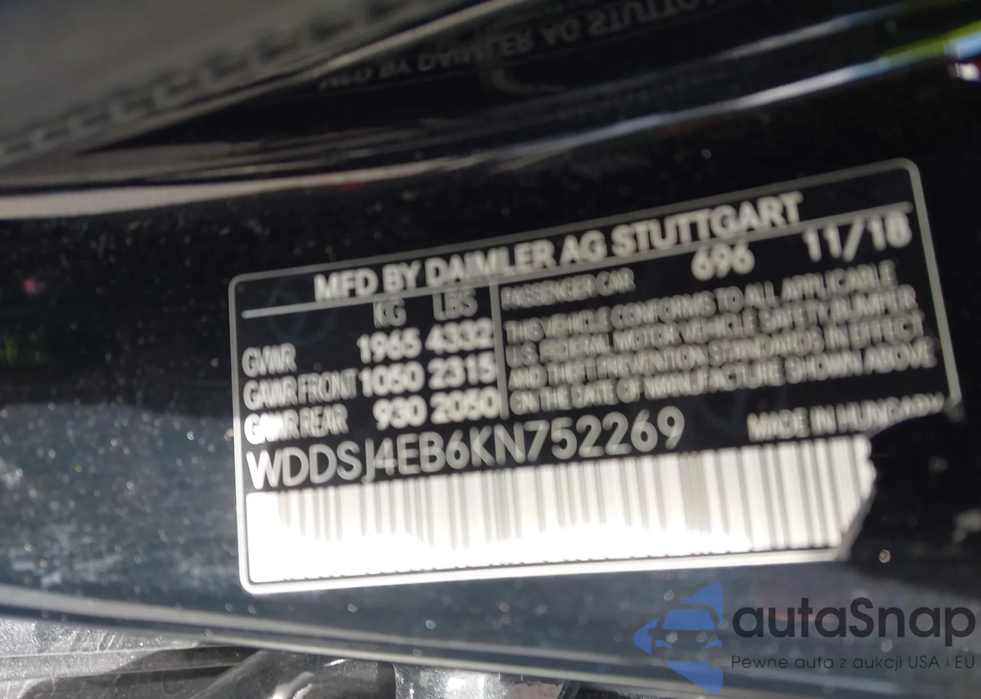 • VIN: WDDSJ4EB6KN752269