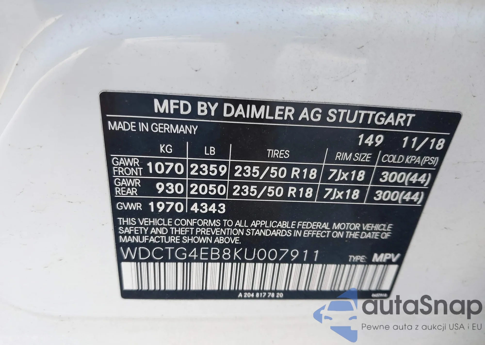 Samochód Mercedes-Benz GLA-klasse 2019 (VIN WDCTG4EB8KU007911) nie był wcześniej licytowany. Dokumenty są czyste, przebieg odpowiada lub jest niższy niż średnia rynku. Sprzedaje go firma ubezpieczeniowa – polecamy zakup. Dostawa do portu zajmie ok. 6–8 tygodni.