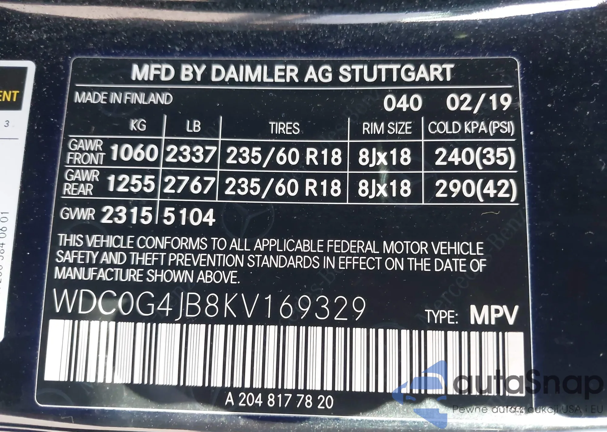 VIN: WDC0G4JB8KV169329