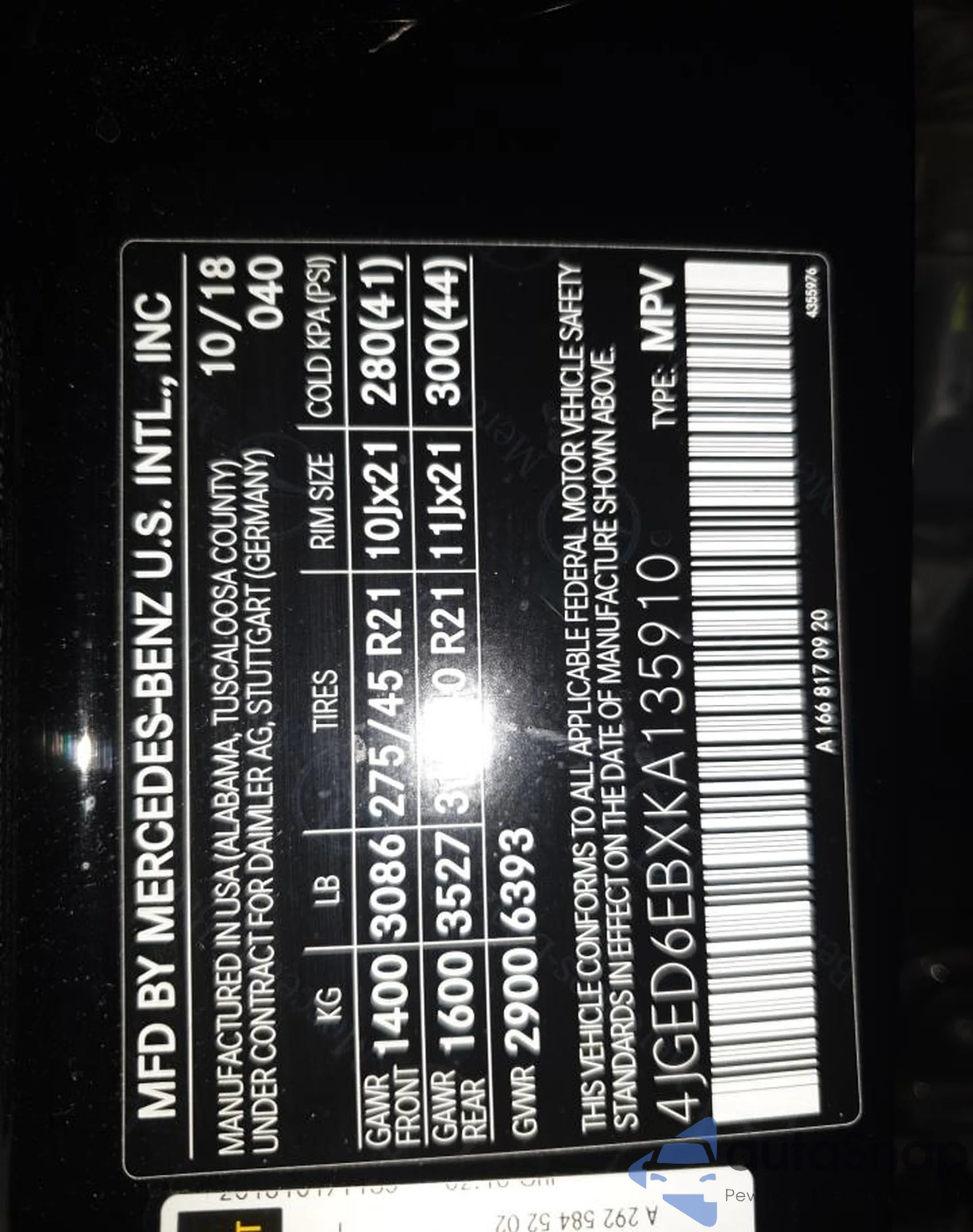 VIN: 4JGED6EBXKA135910
