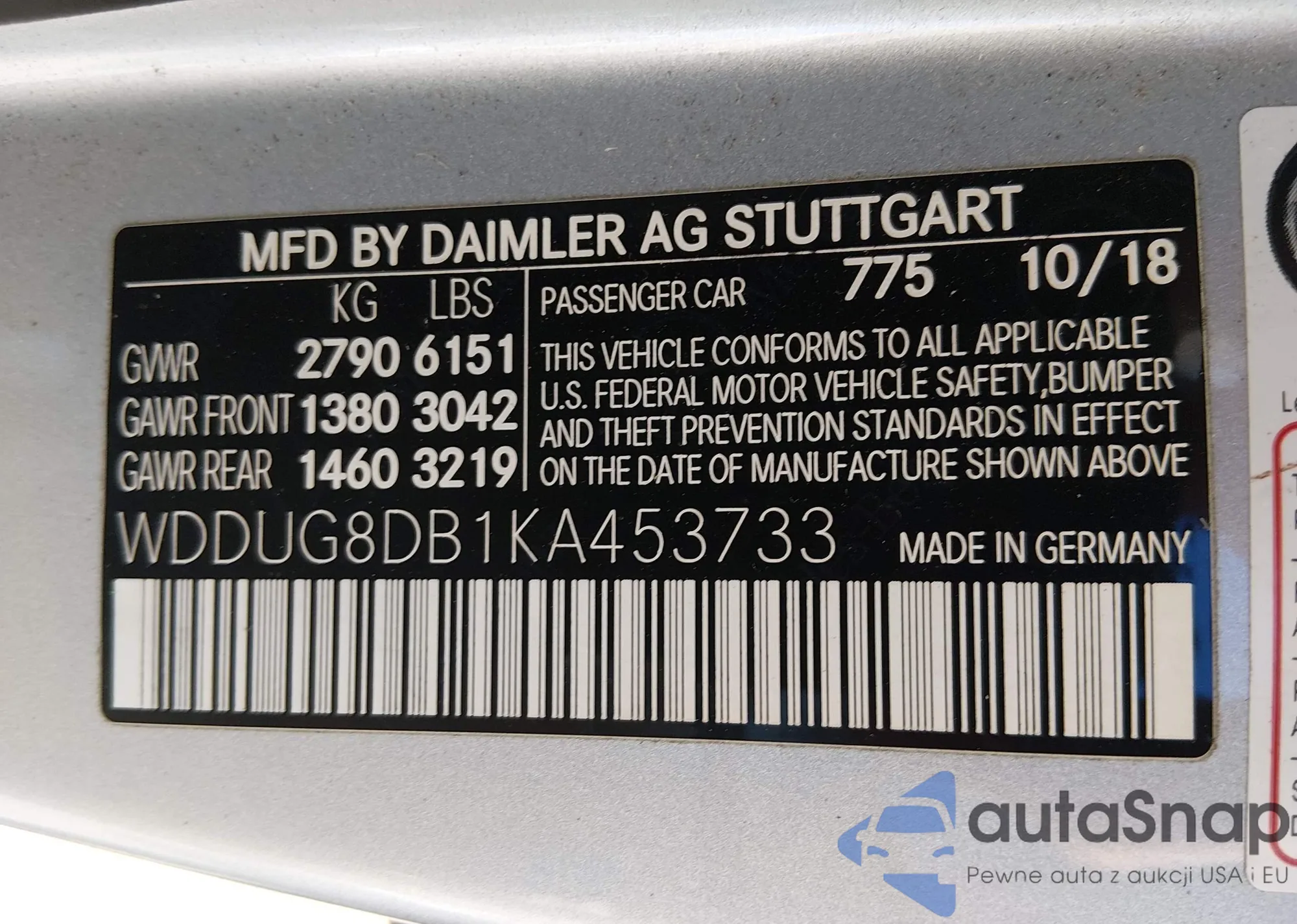 Samochód Mercedes-Benz S-klasse 2019 (VIN WDDUG8DB1KA453733) nie był wcześniej licytowany. Dokumenty są czyste, przebieg odpowiada lub jest niższy niż średnia rynku. Sprzedaje go firma ubezpieczeniowa – polecamy zakup. Dostawa do portu zajmie ok. 6–8 tygodni.