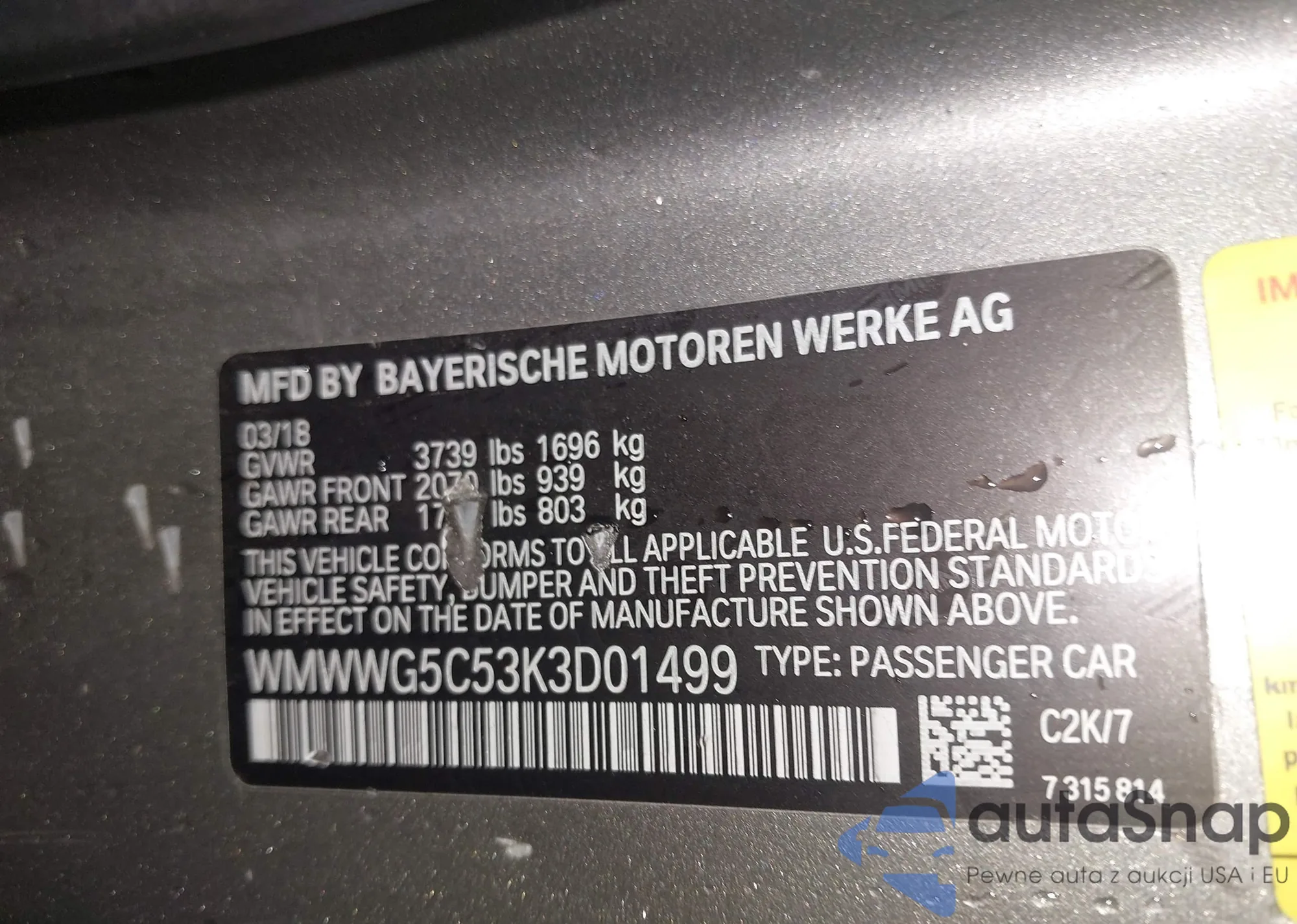 VIN: WMWWG5C53K3D01499