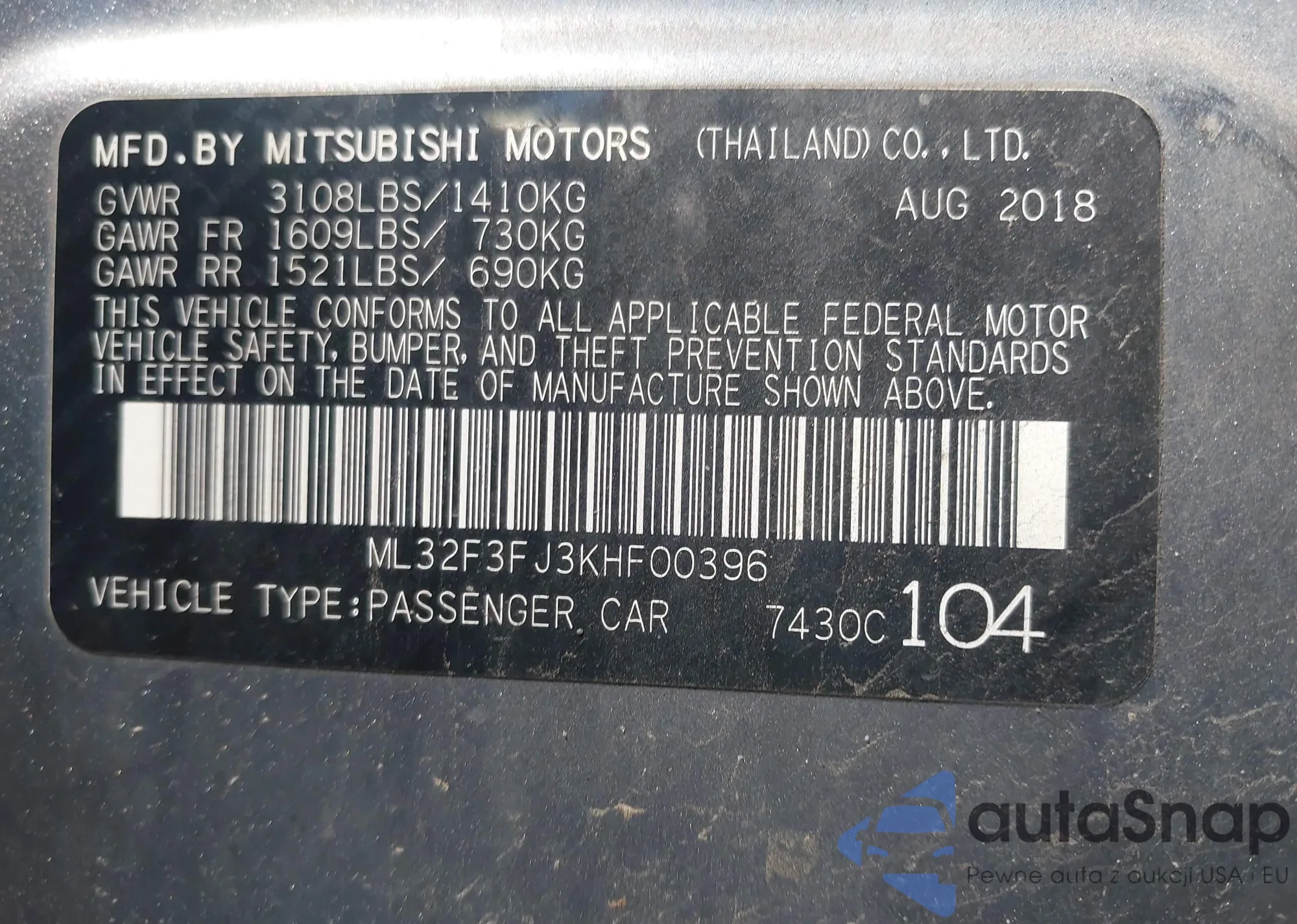 VIN: ML32F3FJ3KHF00396