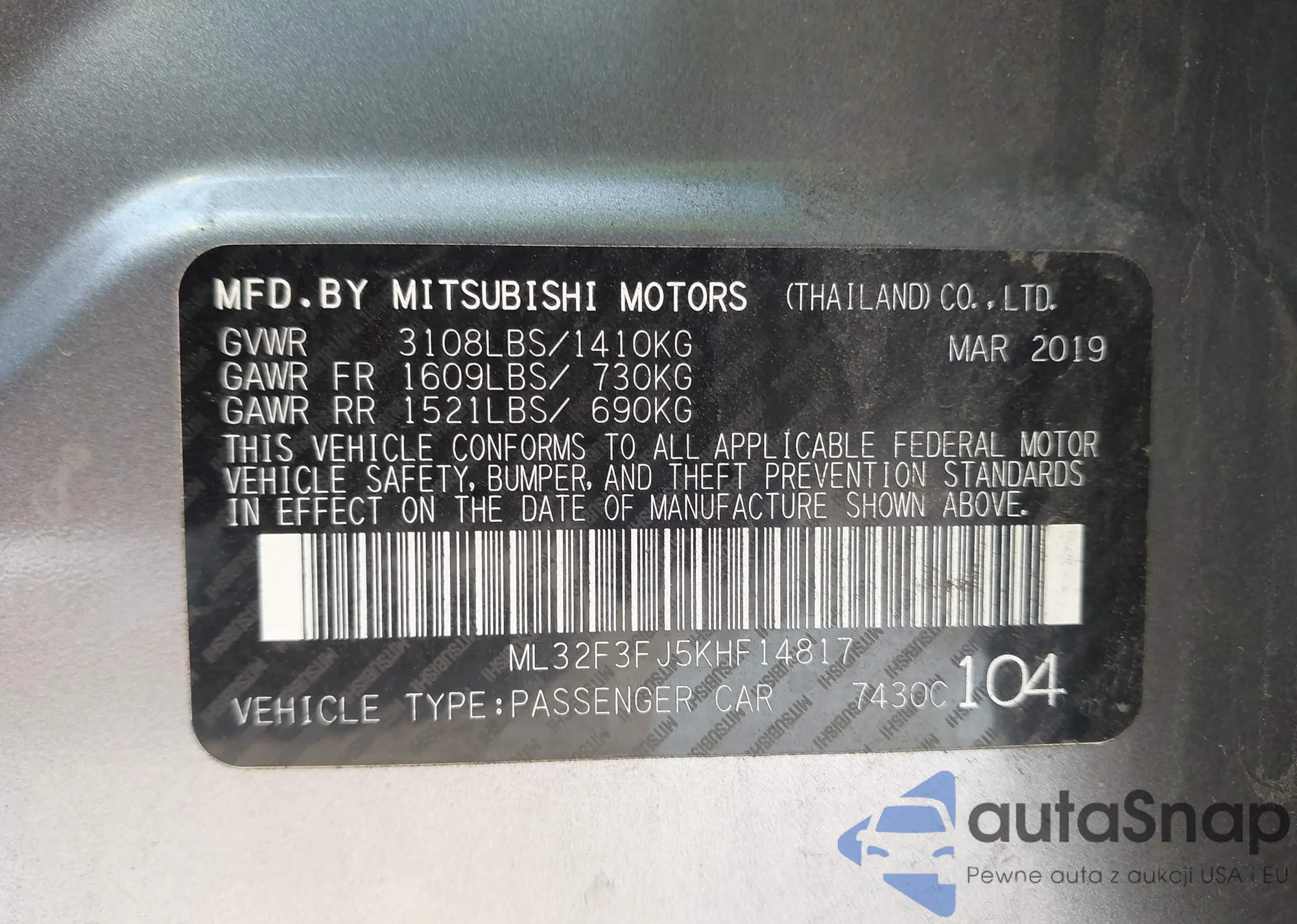 VIN: ML32F3FJ5KHF14817