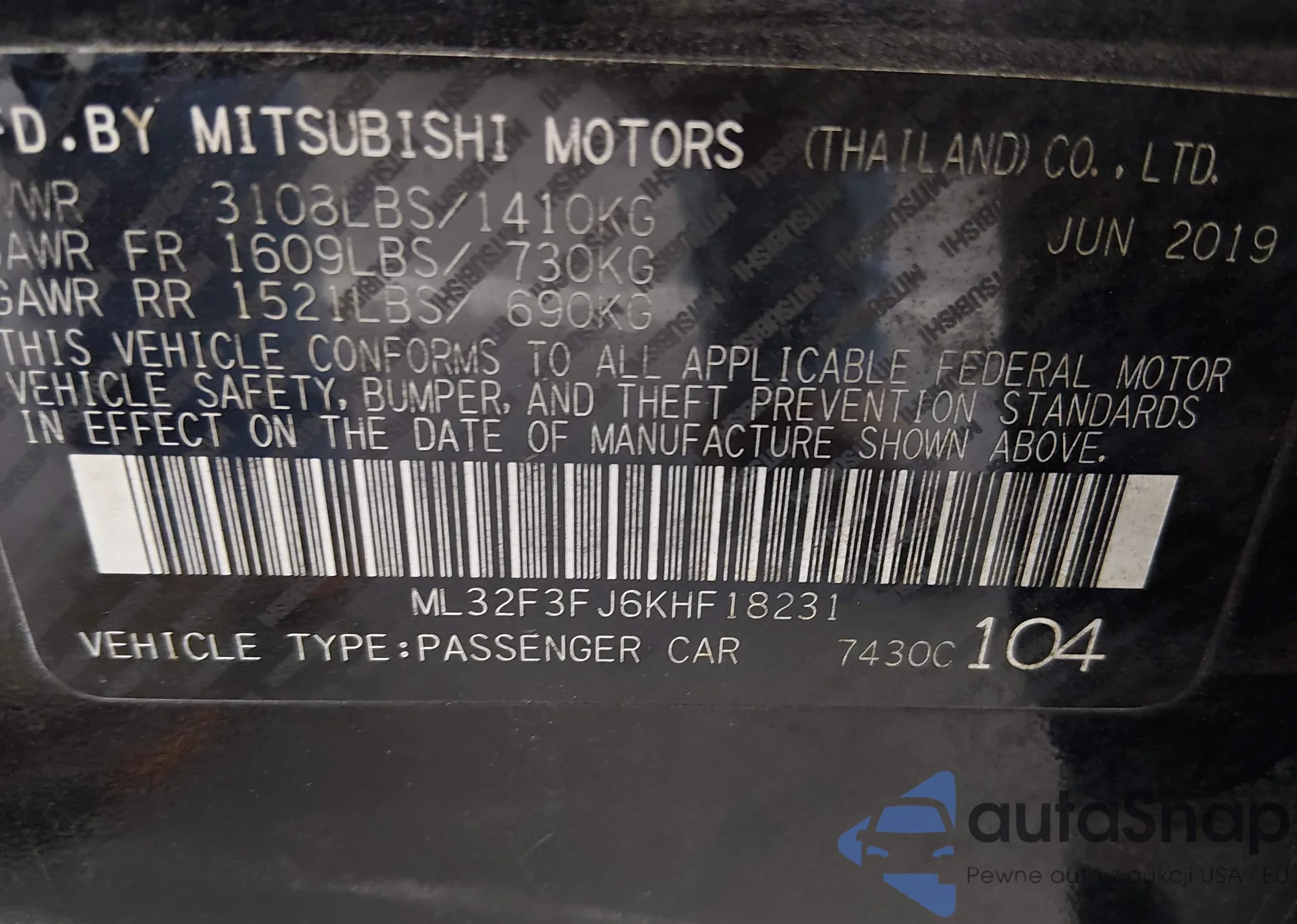 • VIN: ML32F3FJ6KHF18231