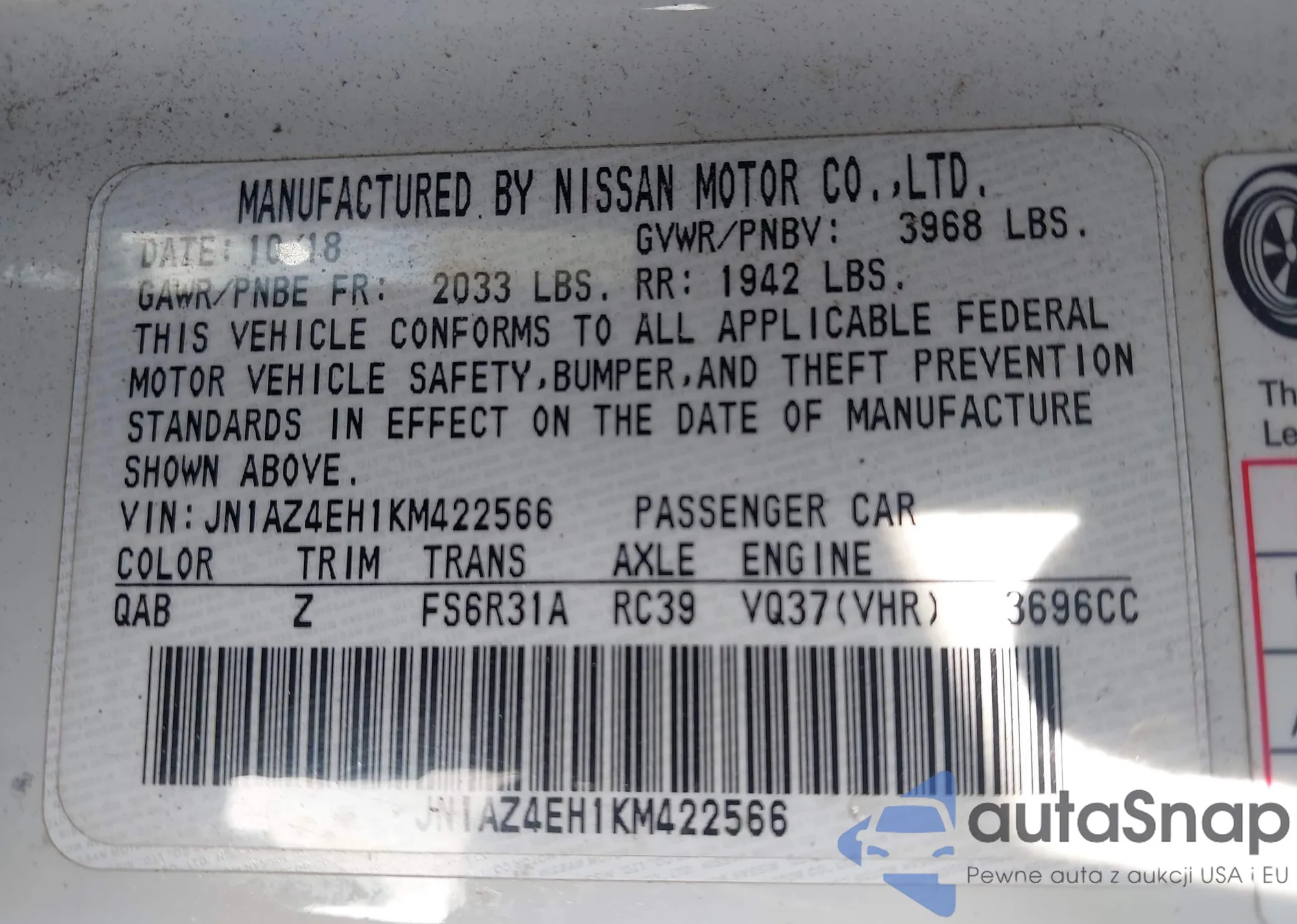 • VIN: JN1AZ4EH1KM422566