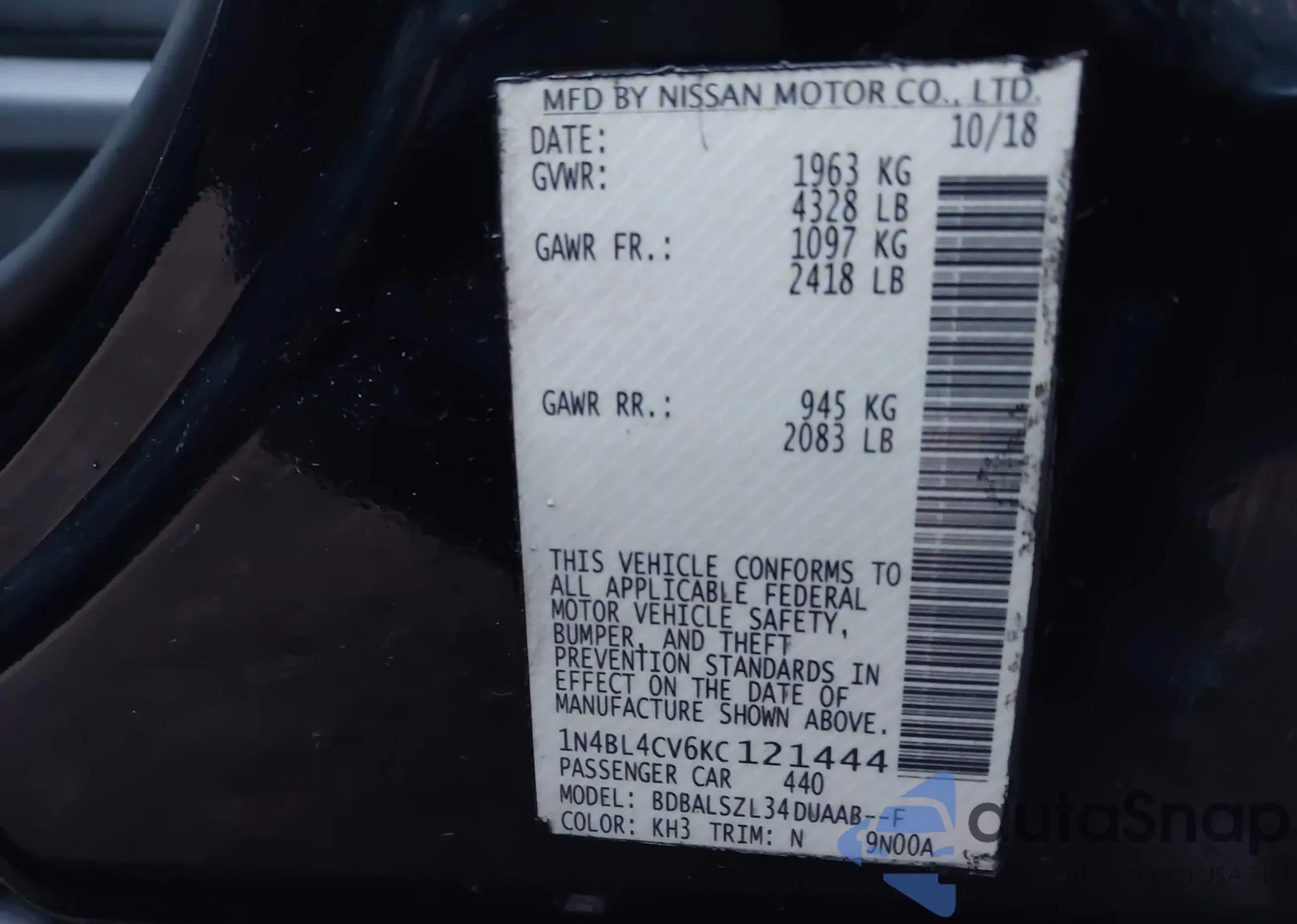 VIN: 1N4BL4CV6KC121444