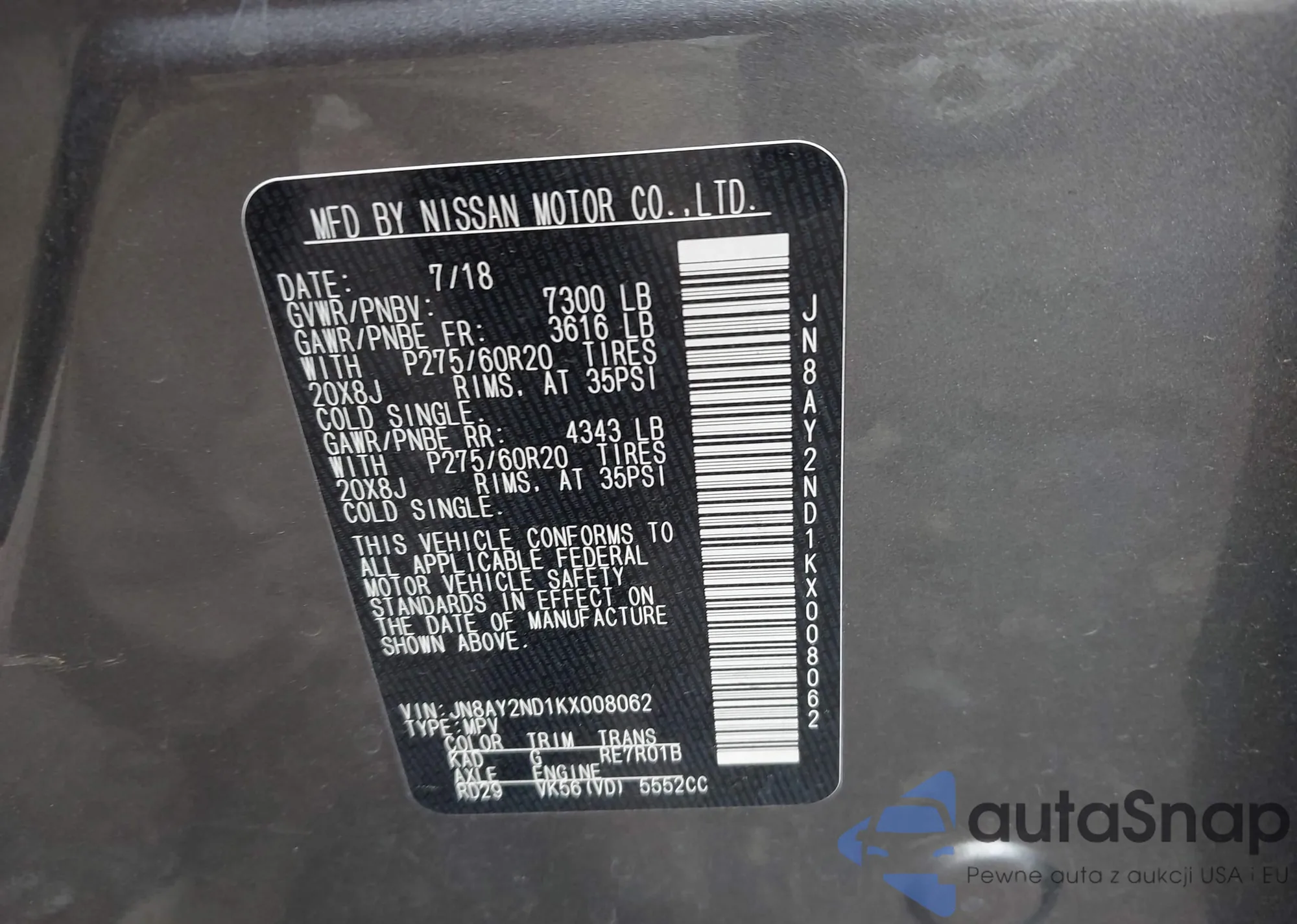 VIN: JN8AY2ND1KX008062