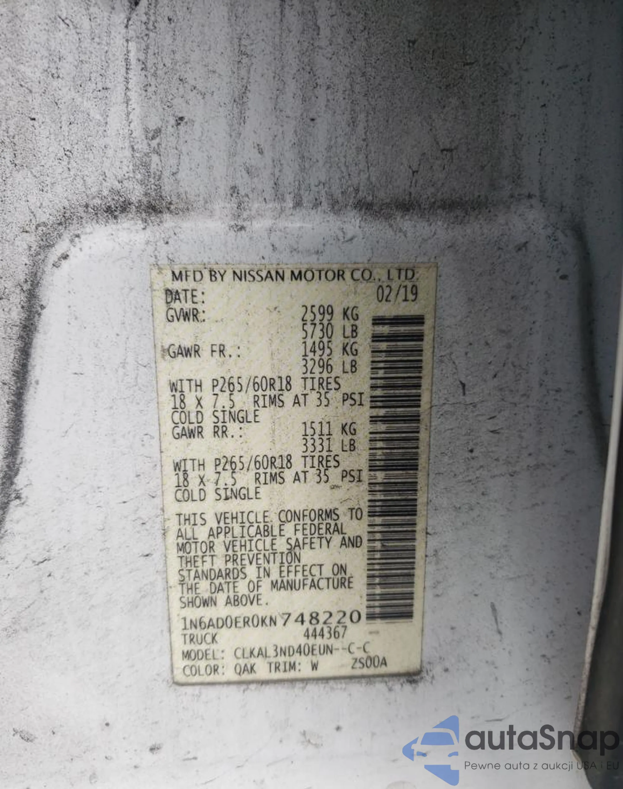 VIN: 1N6AD0ER0KN748220