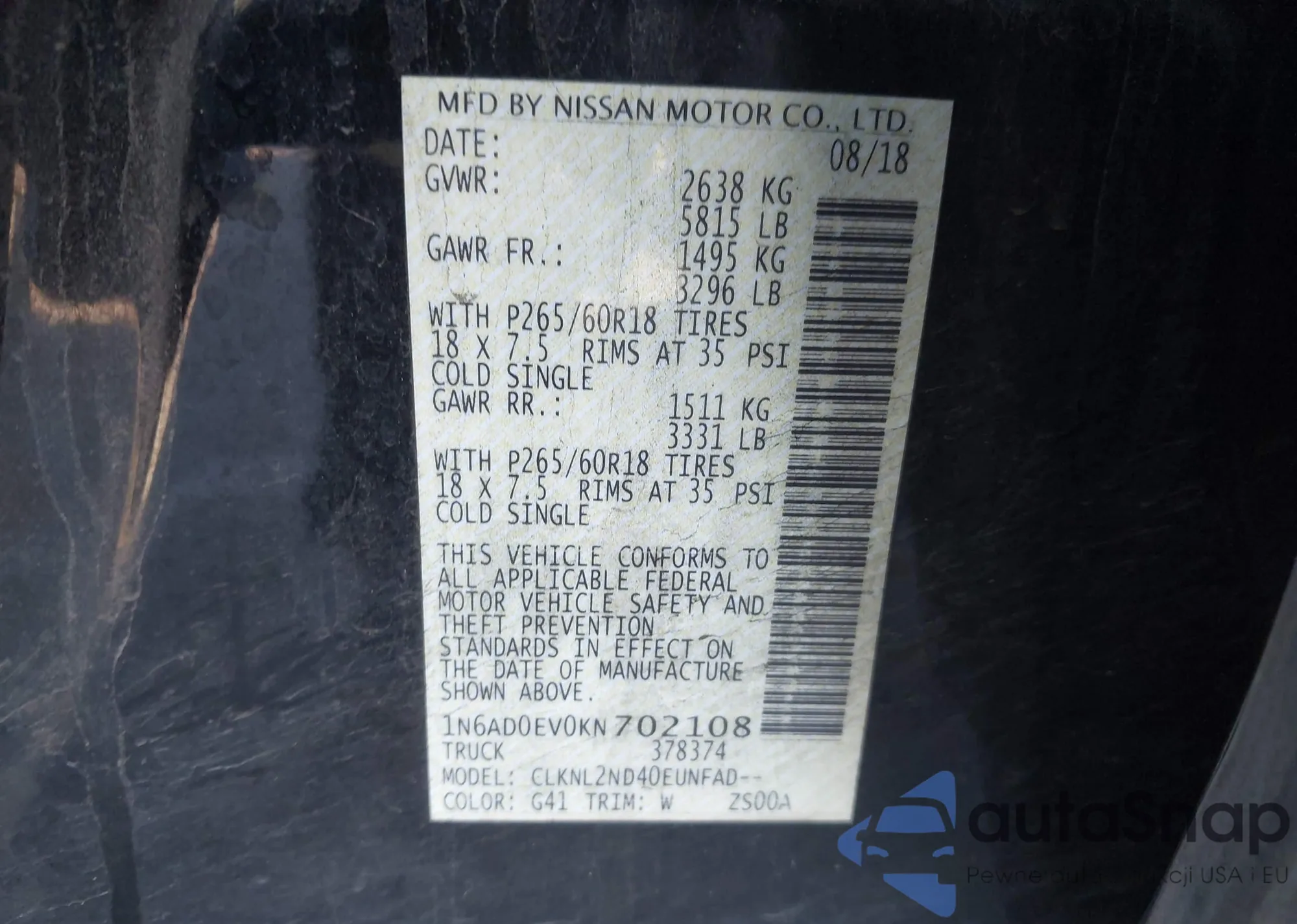 • VIN: 1N6AD0EV0KN702108