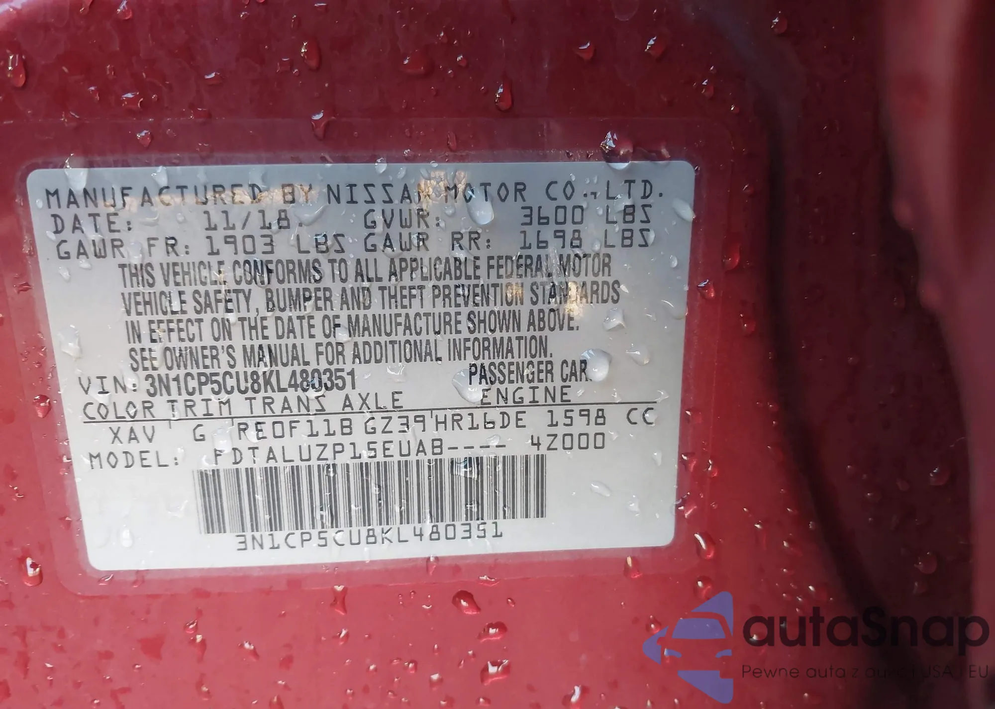 VIN: 3N1CP5CU8KL480351