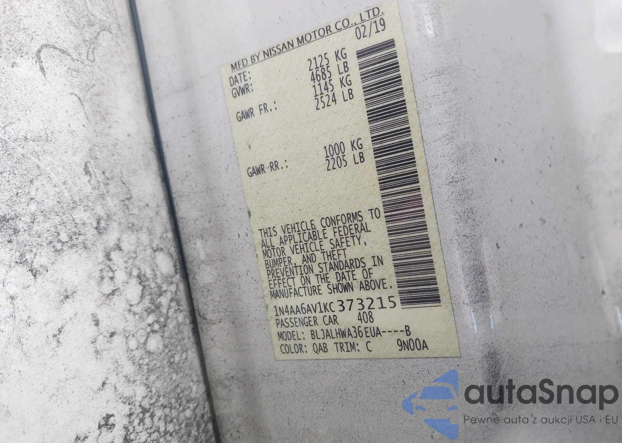 VIN: 1N4AA6AV1KC373215