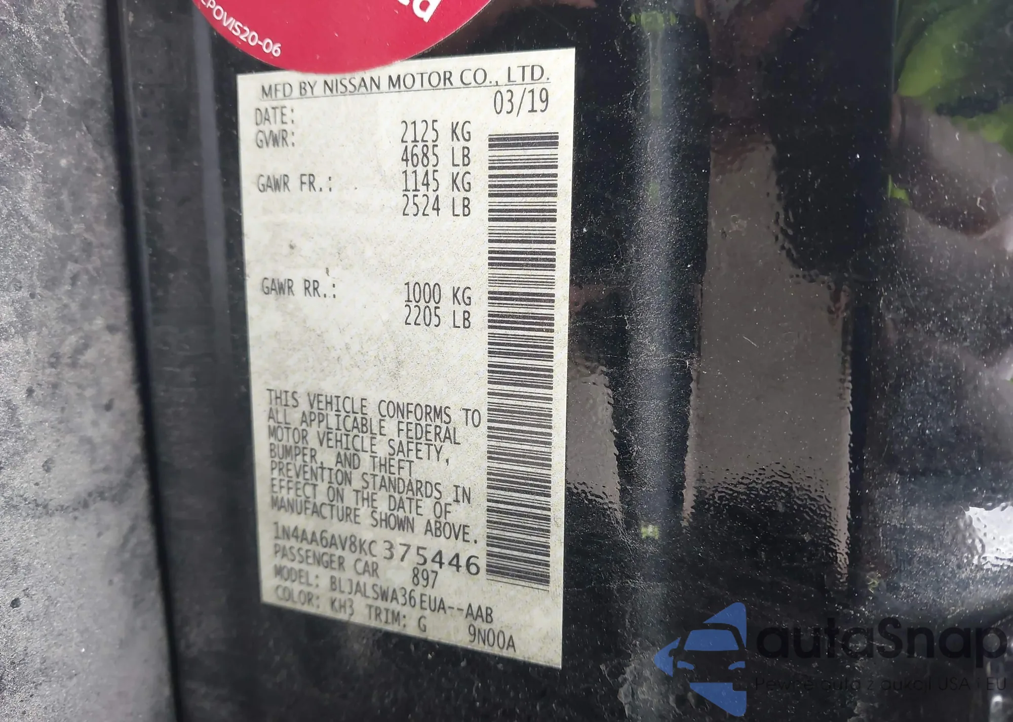 VIN: 1N4AA6AV8KC375446