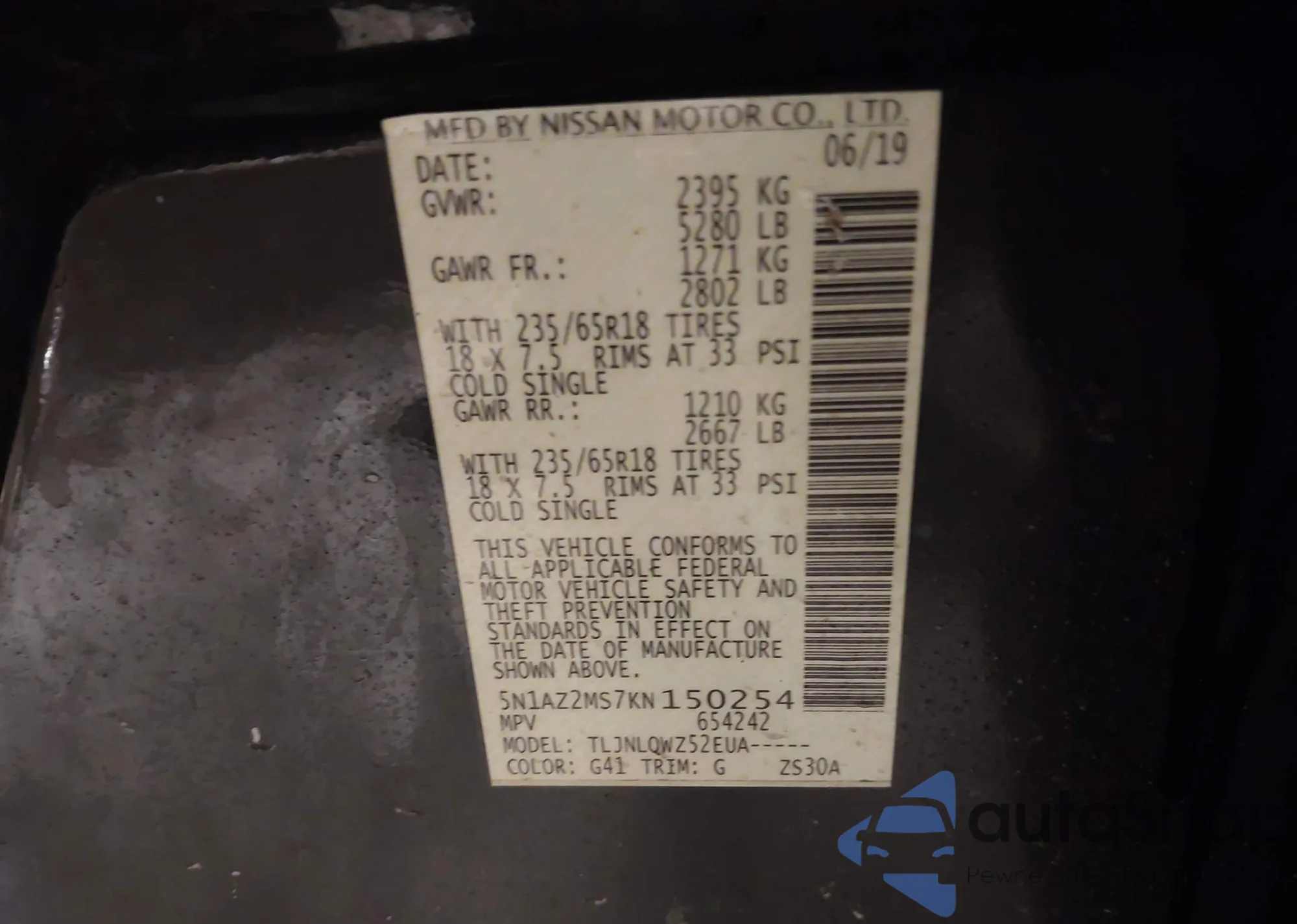 • VIN: 5N1AZ2MS7KN150254