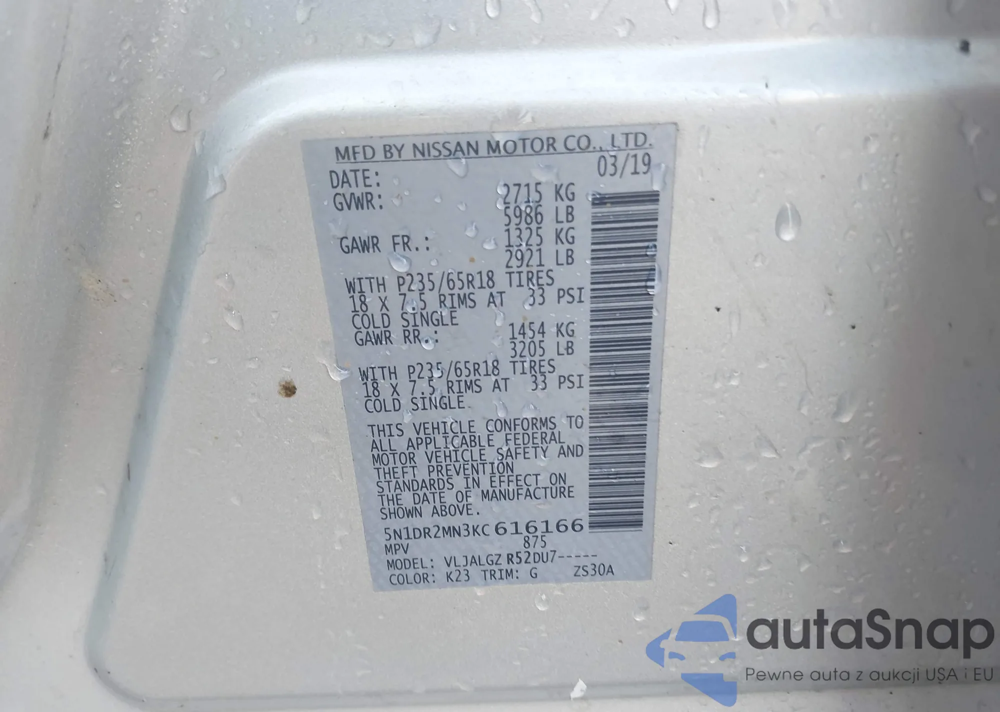 Samochód Nissan Pathfinder 2019 (VIN 5N1DR2MN3KC616166) nie był wcześniej licytowany. Dokumenty są czyste, przebieg odpowiada lub jest niższy niż średnia rynku. Sprzedaje go firma ubezpieczeniowa – polecamy zakup. Dostawa do portu zajmie ok. 6–8 tygodni.
