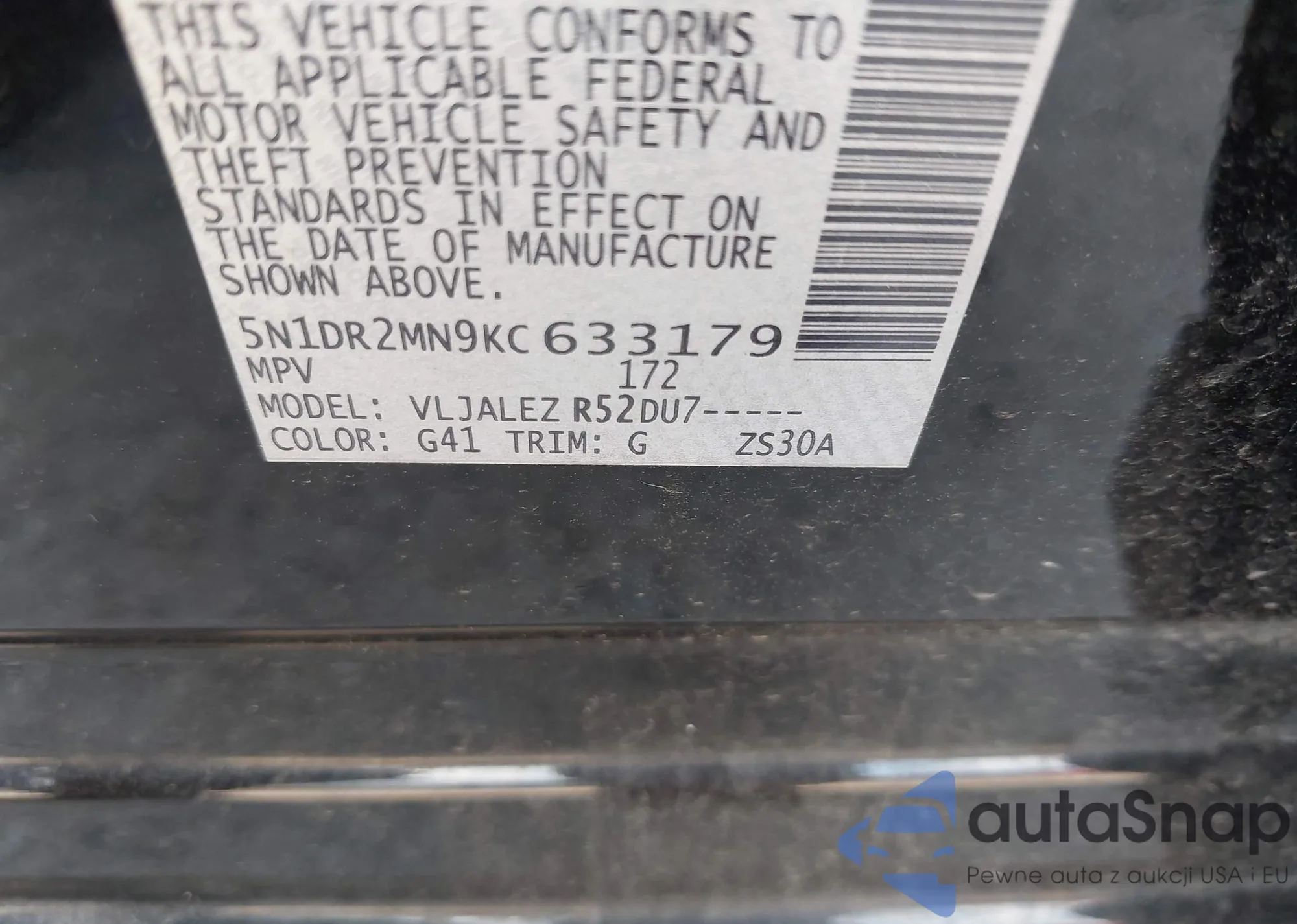 VIN: 5N1DR2MN9KC633179