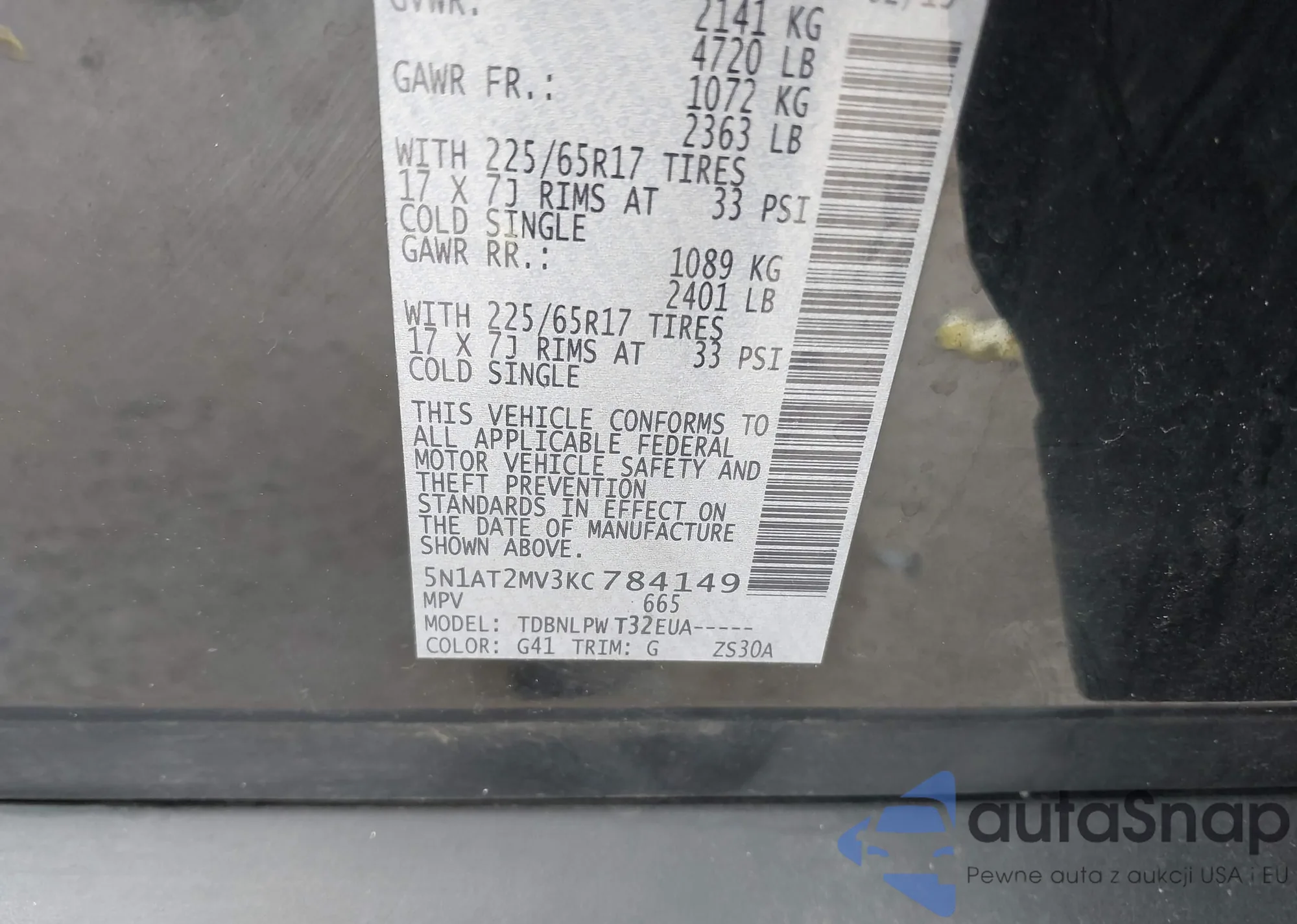 VIN: 5N1AT2MV3KC784149