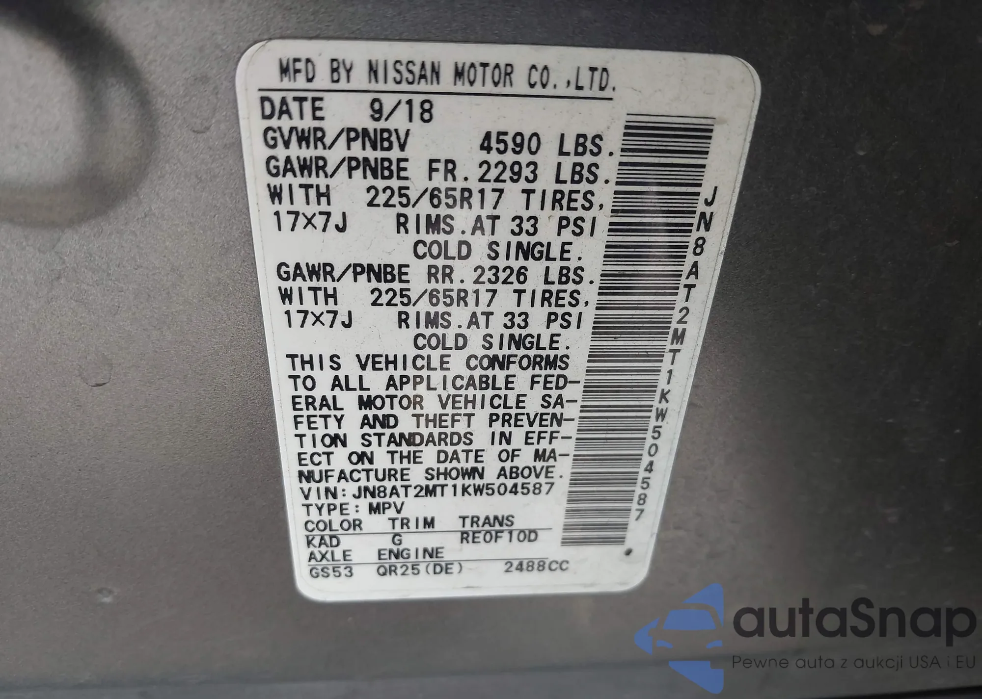 VIN: JN8AT2MT1KW504587