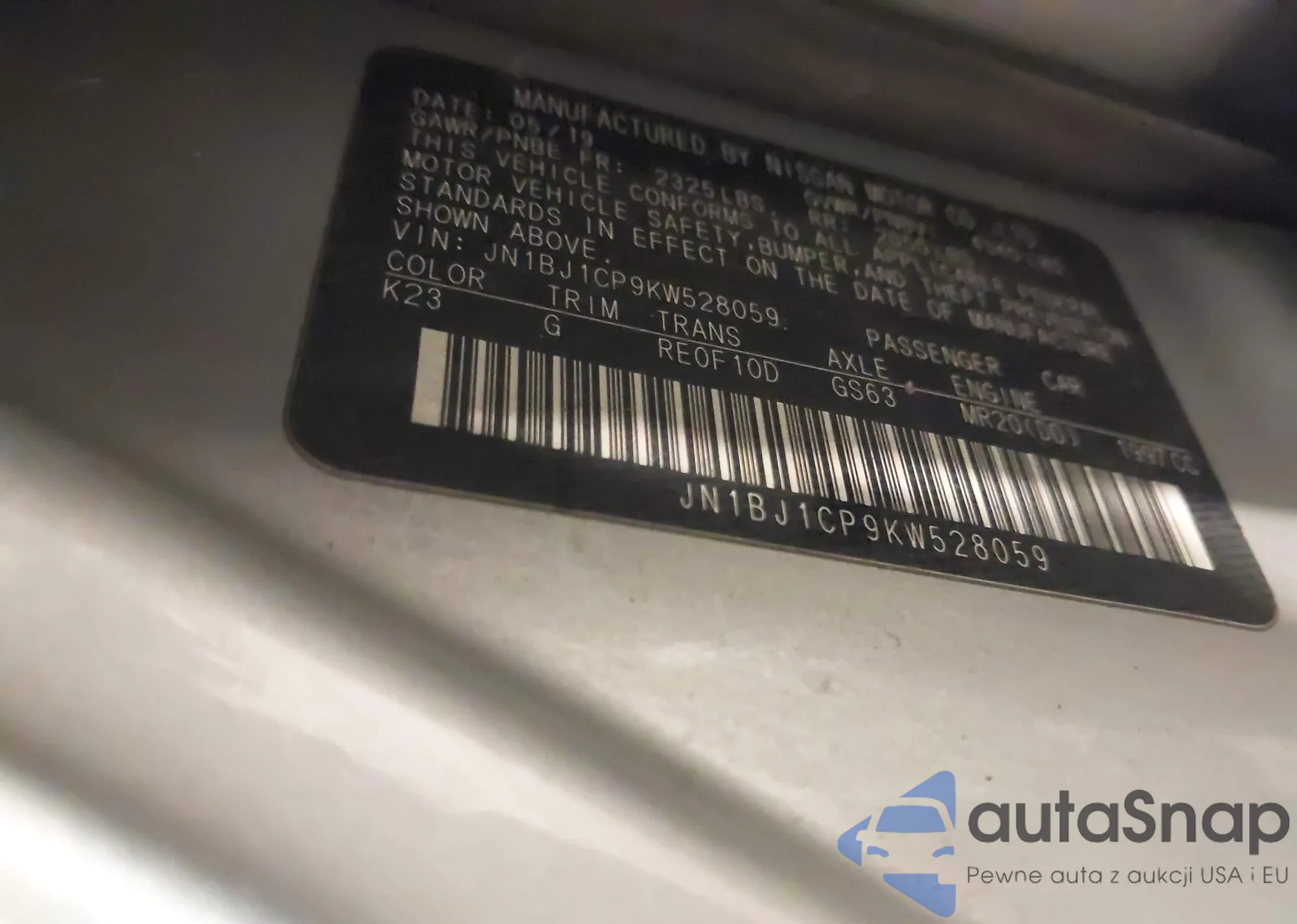 VIN: JN1BJ1CP9KW528059