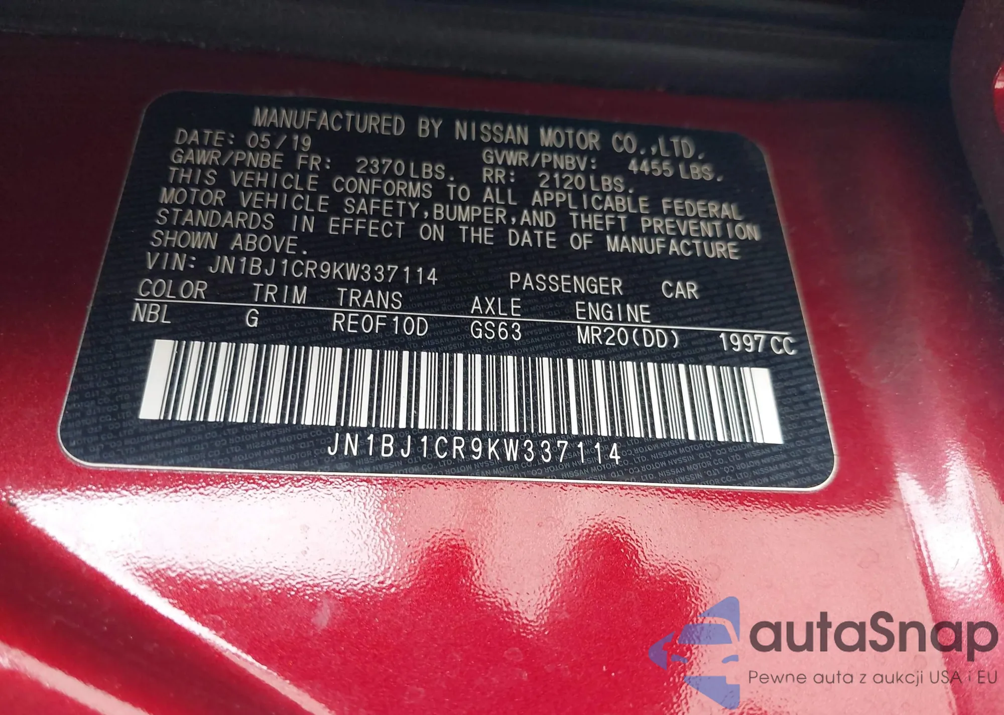 VIN: JN1BJ1CR9KW337114