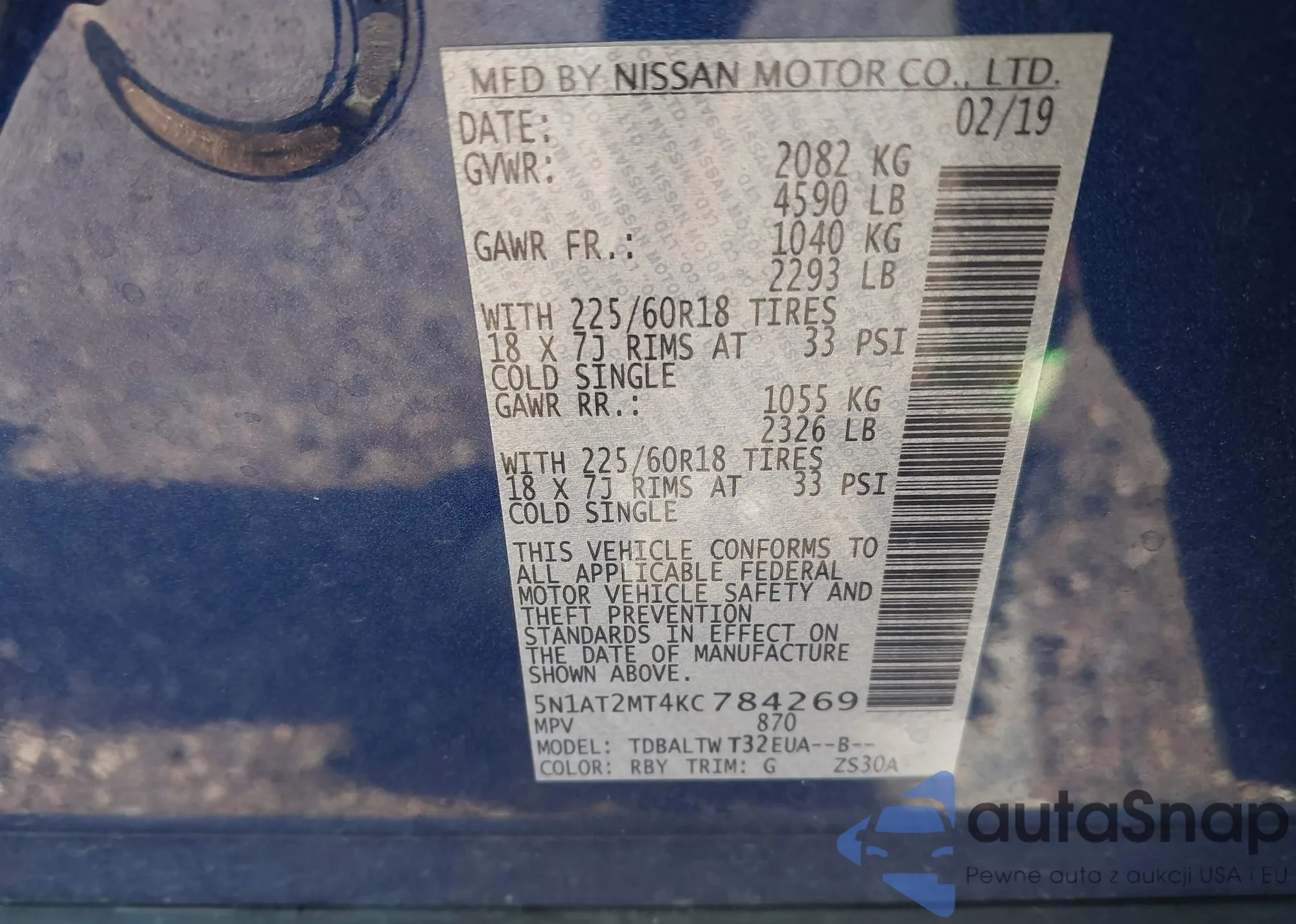 VIN: 5N1AT2MT4KC784269