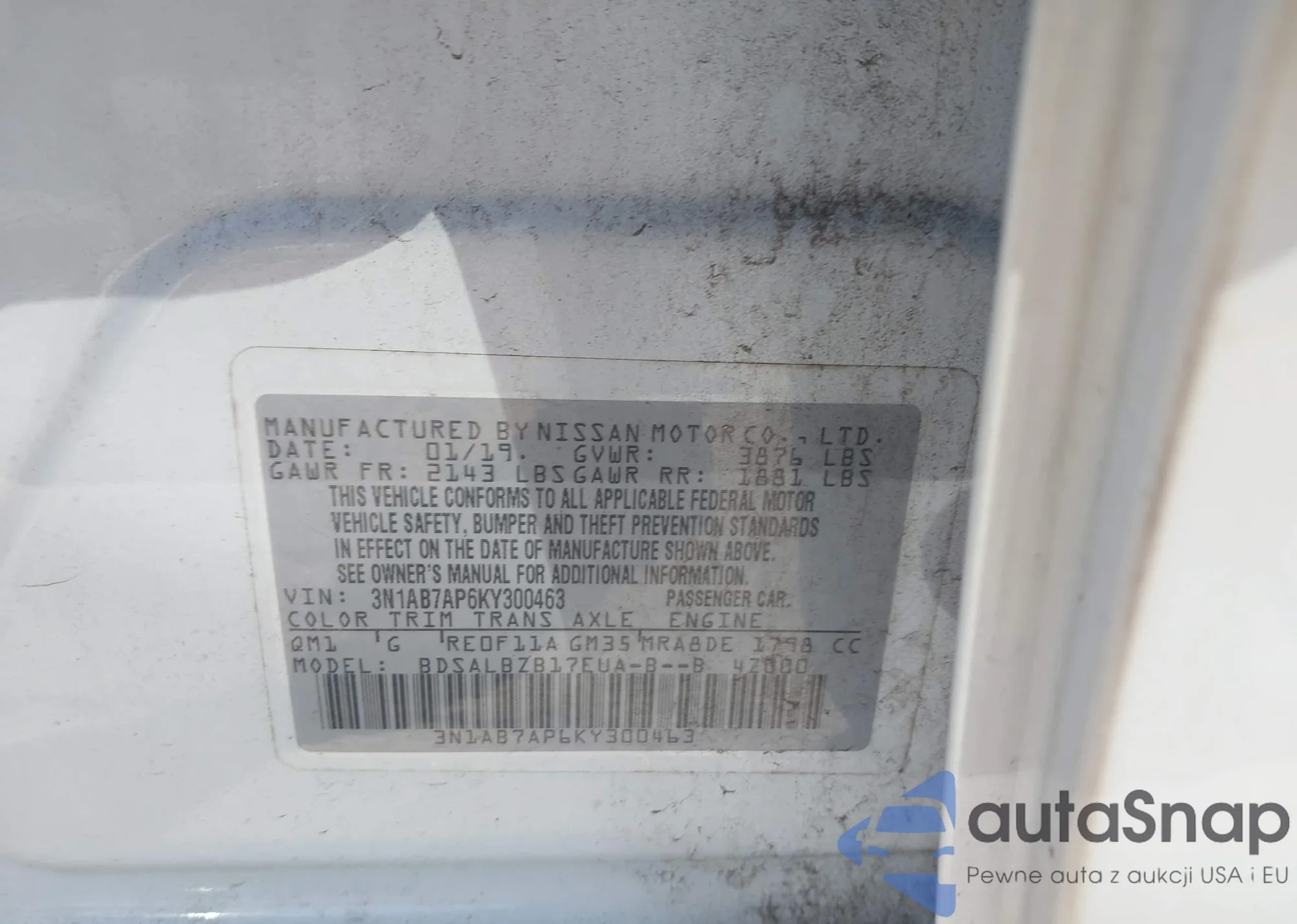 VIN: 3N1AB7AP6KY300463