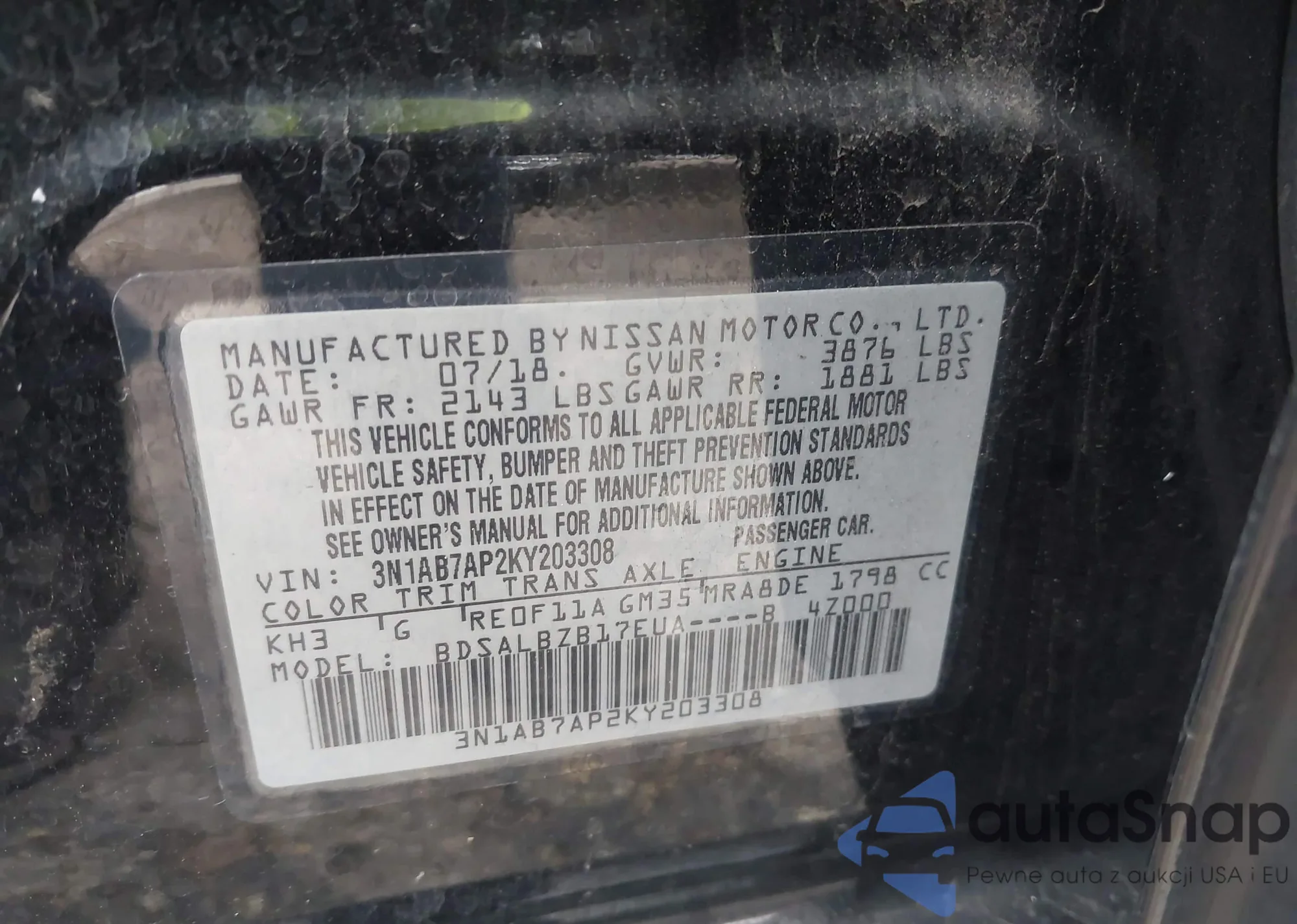 VIN: 3N1AB7AP2KY203308