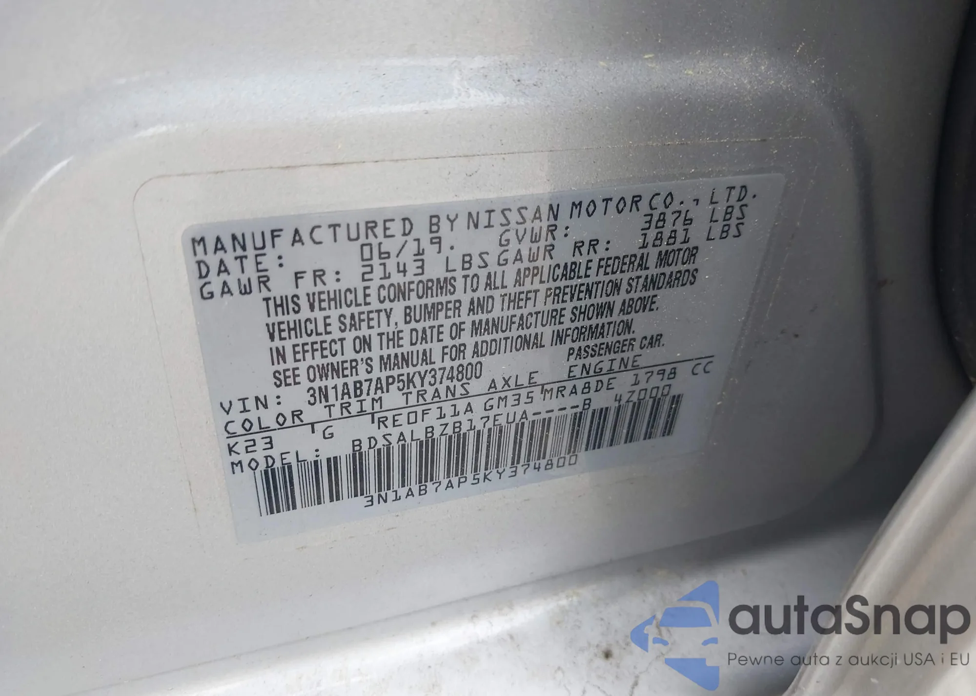 VIN: 3N1AB7AP5KY374800