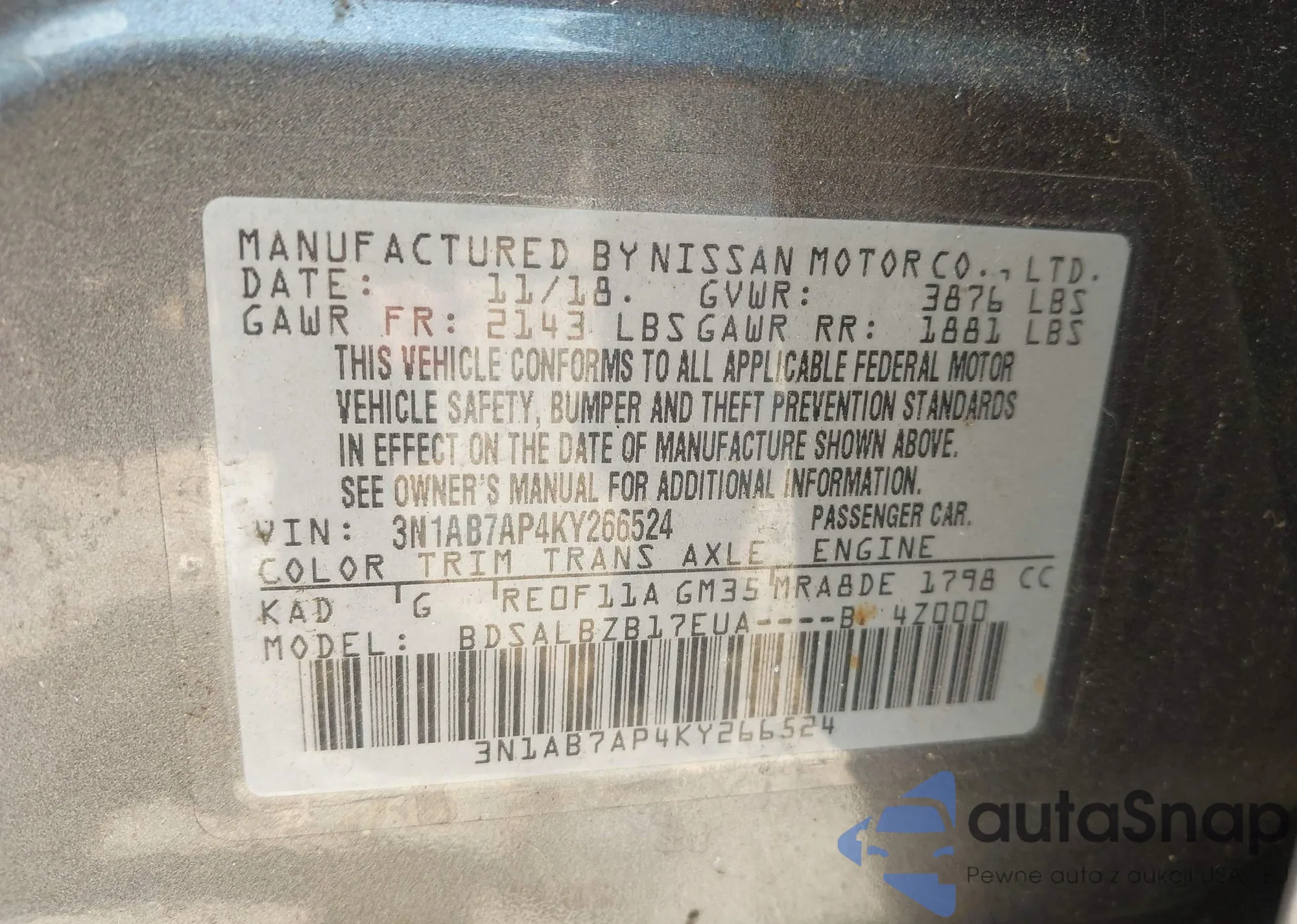 VIN: 3N1AB7AP4KY266524