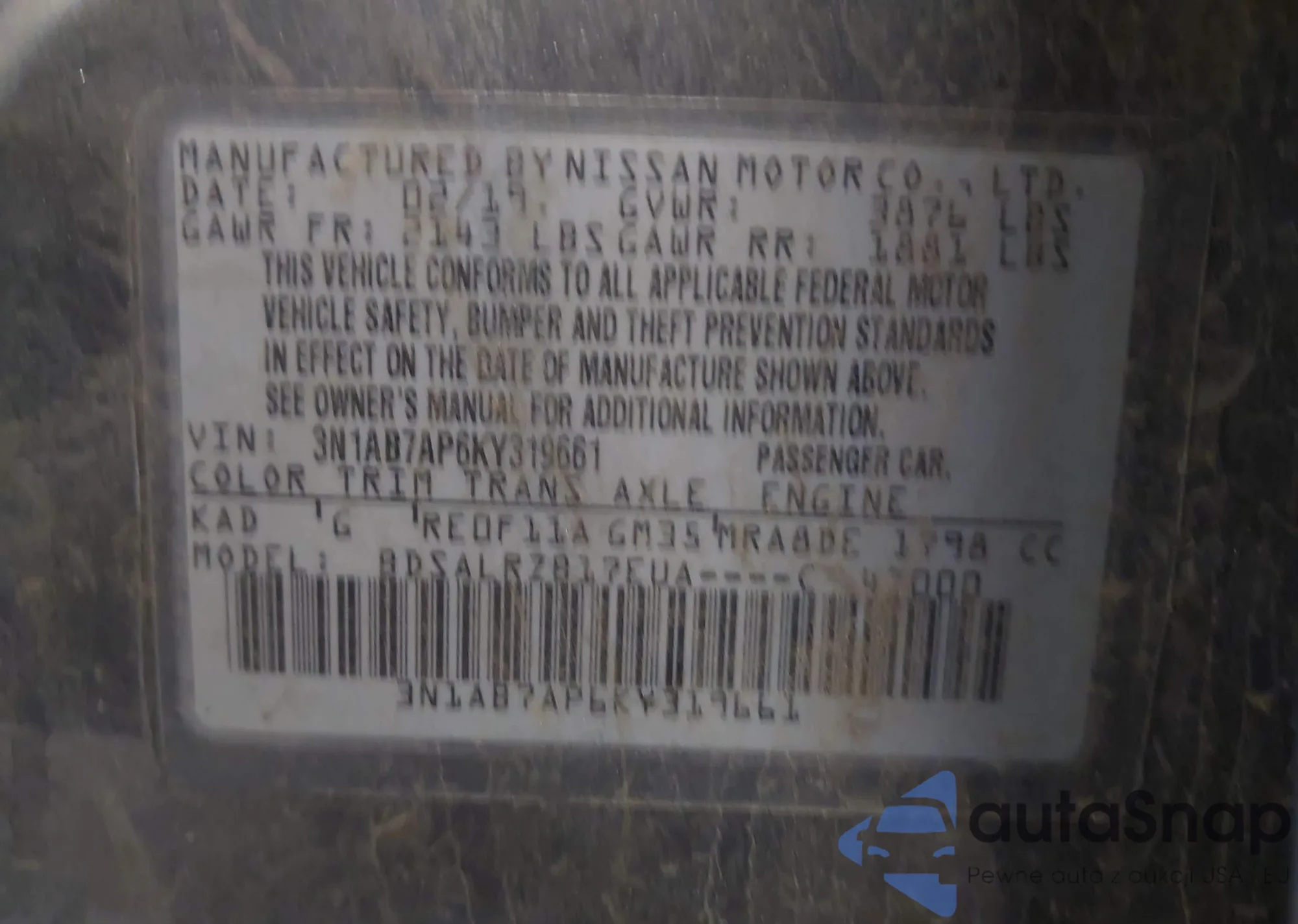 VIN: 3N1AB7AP6KY319661