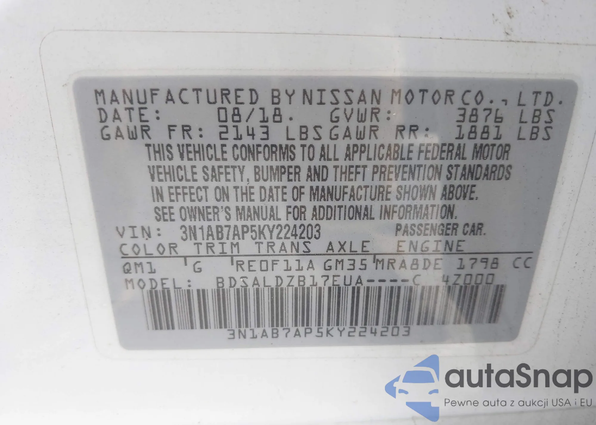 VIN: 3N1AB7AP5KY224203