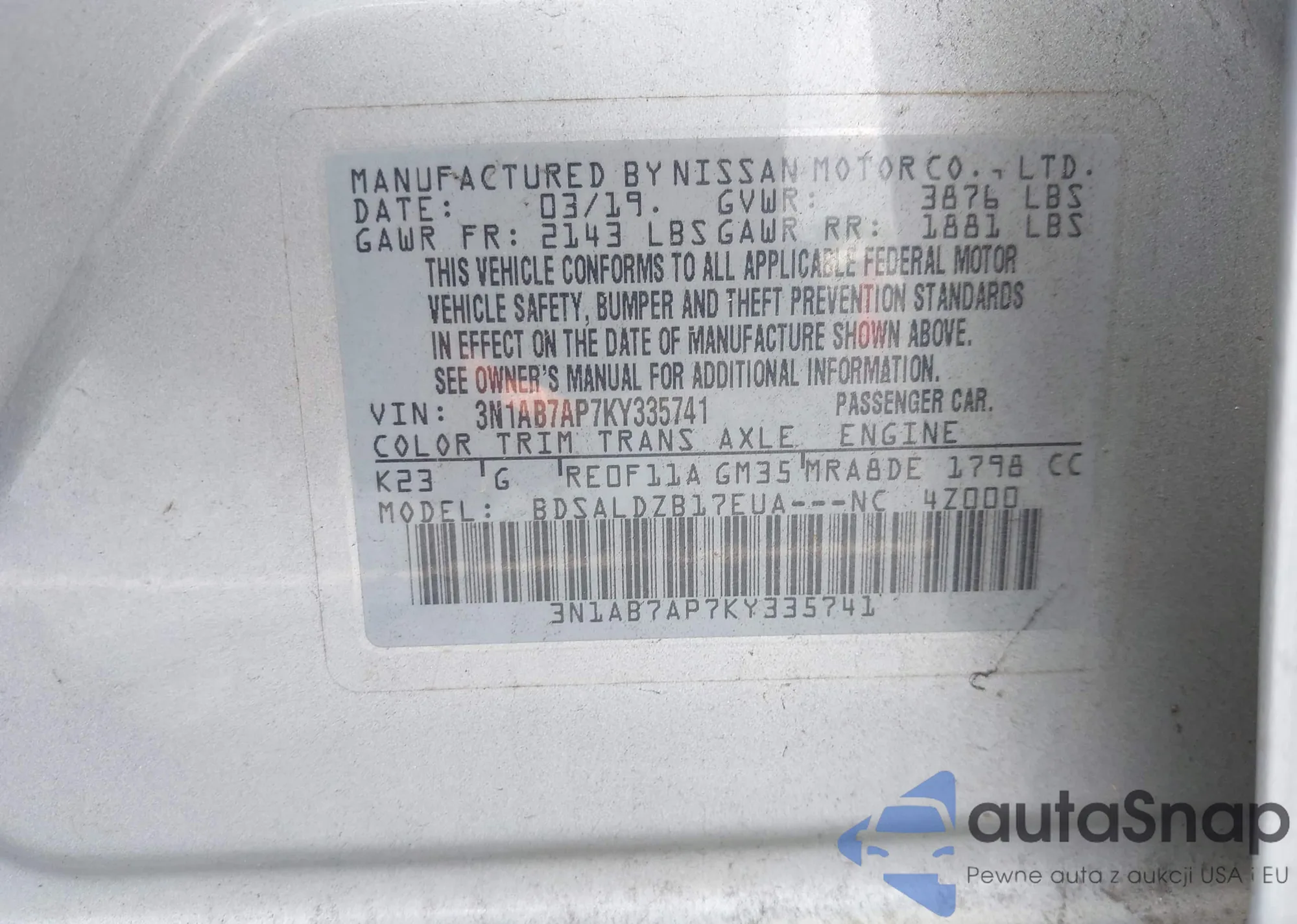 VIN: 3N1AB7AP7KY335741