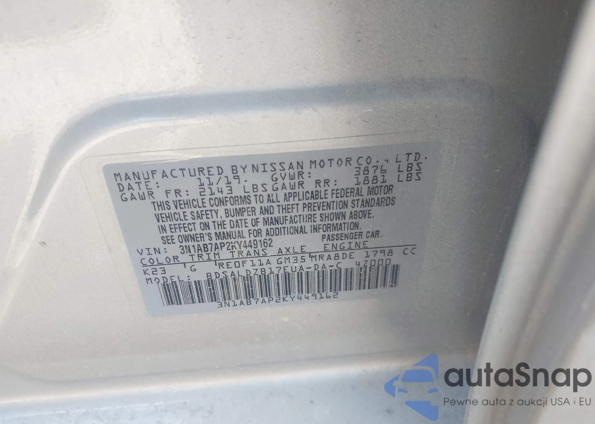 VIN: 3N1AB7AP2KY449162