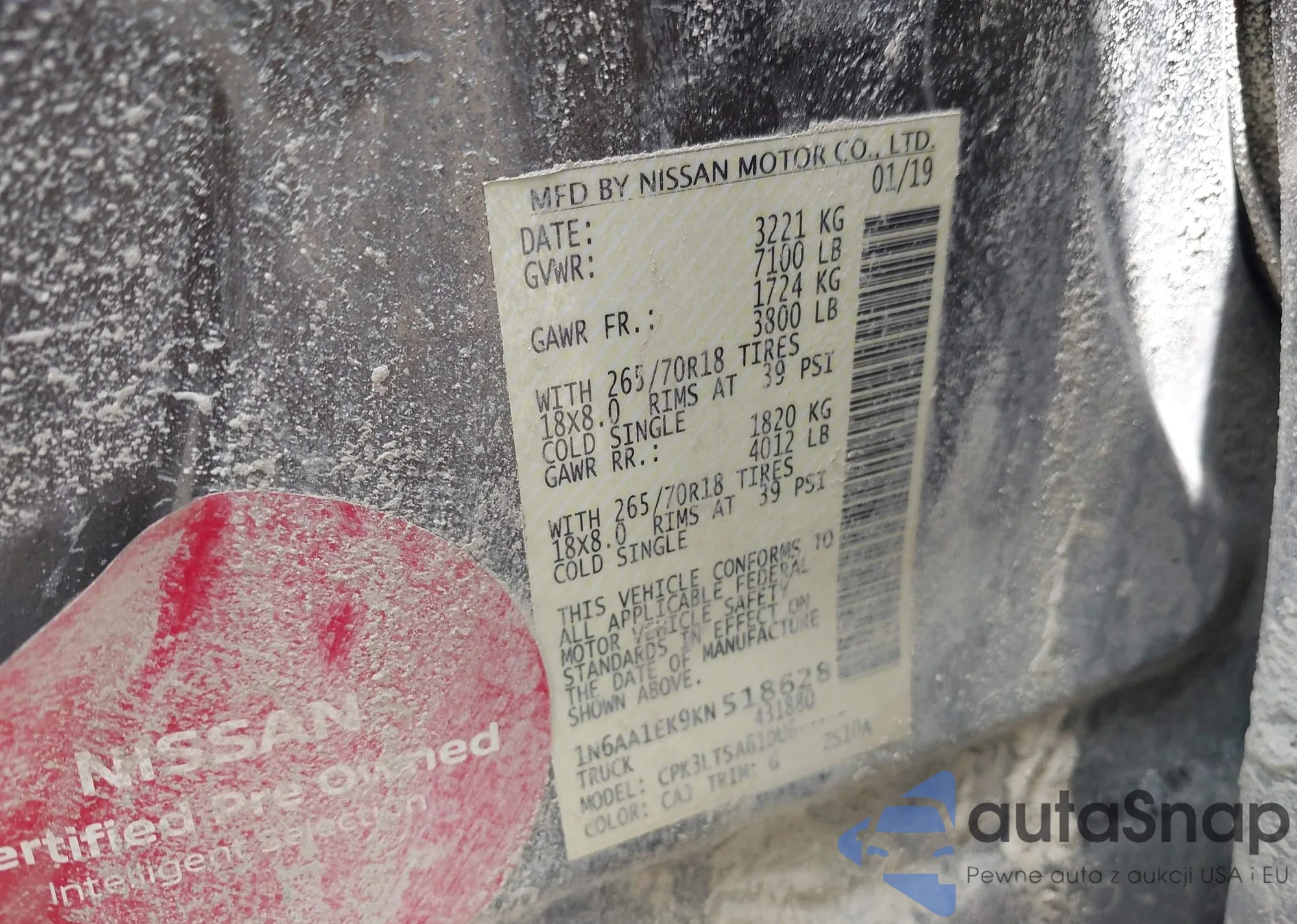 • VIN: 1N6AA1EK9KN518628