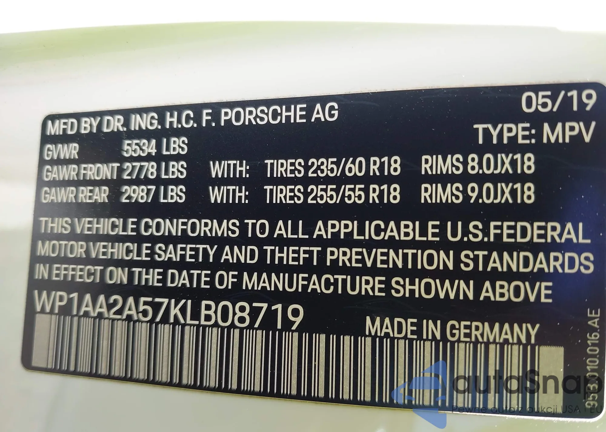 VIN: WP1AA2A57KLB08719