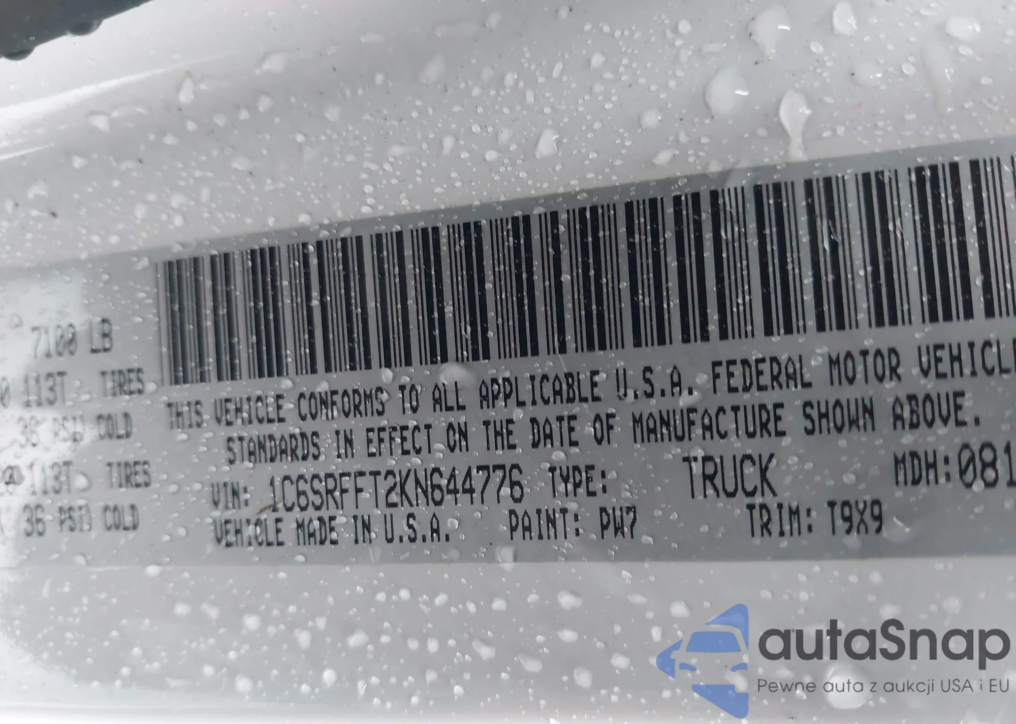 VIN: 1C6SRFFT2KN644776