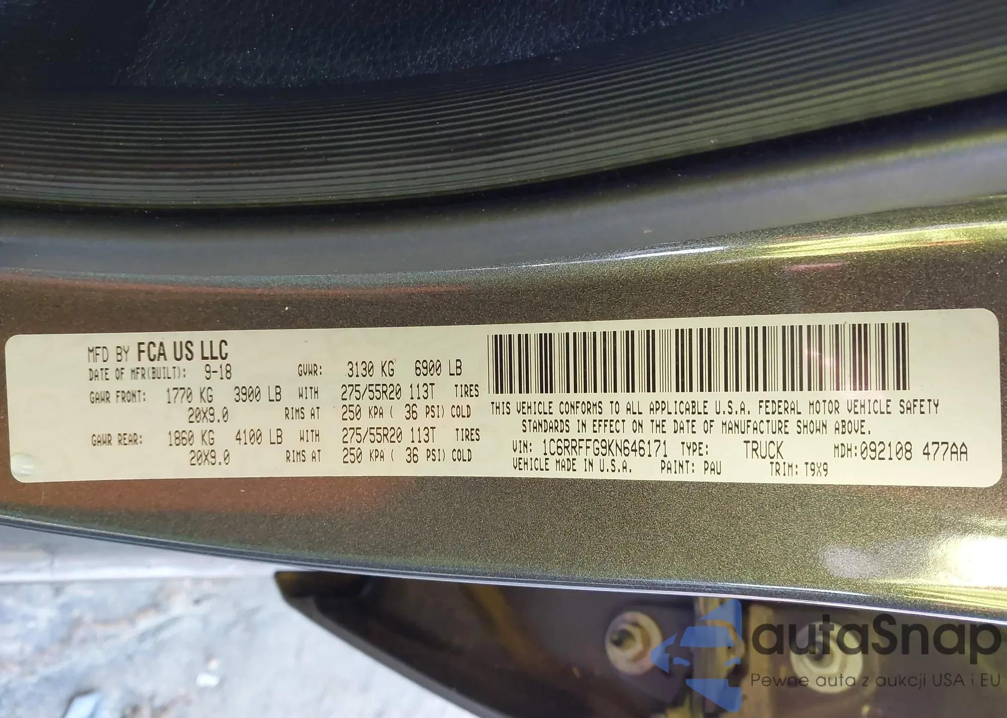 Samochód RAM 1500 2019 (VIN 1C6RRFFG9KN646171) nie był wcześniej licytowany. Dokumenty są czyste, przebieg odpowiada lub jest niższy niż średnia rynku. Sprzedaje go firma ubezpieczeniowa – polecamy zakup. Dostawa do portu zajmie ok. 6–8 tygodni.