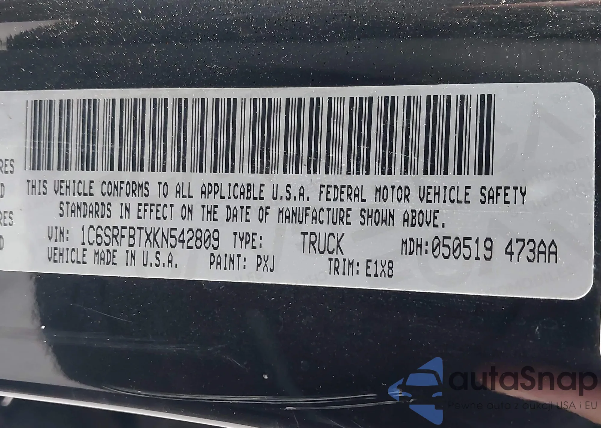 VIN: 1C6SRFBTXKN542809
