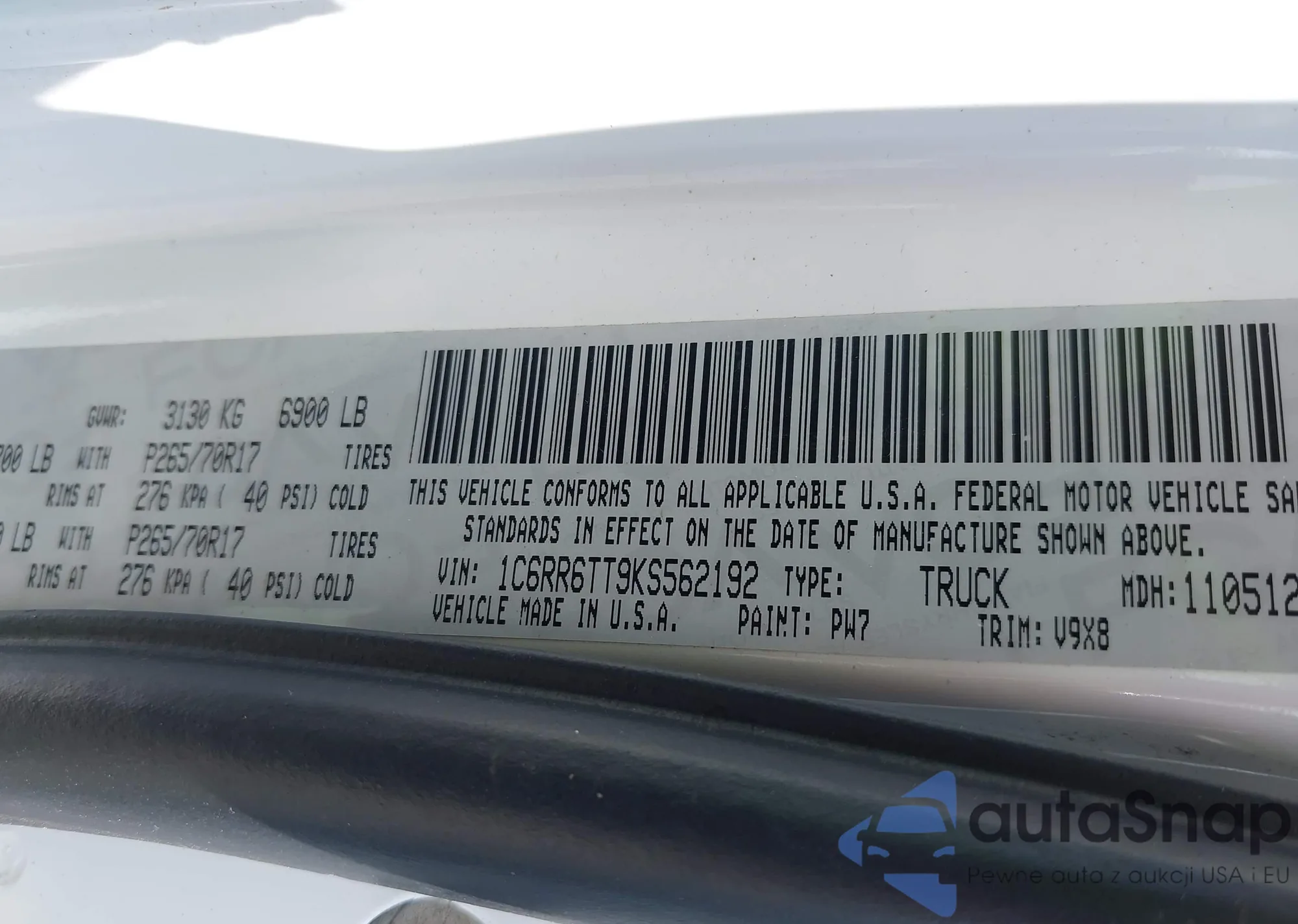 VIN: 1C6RR6TT9KS562192